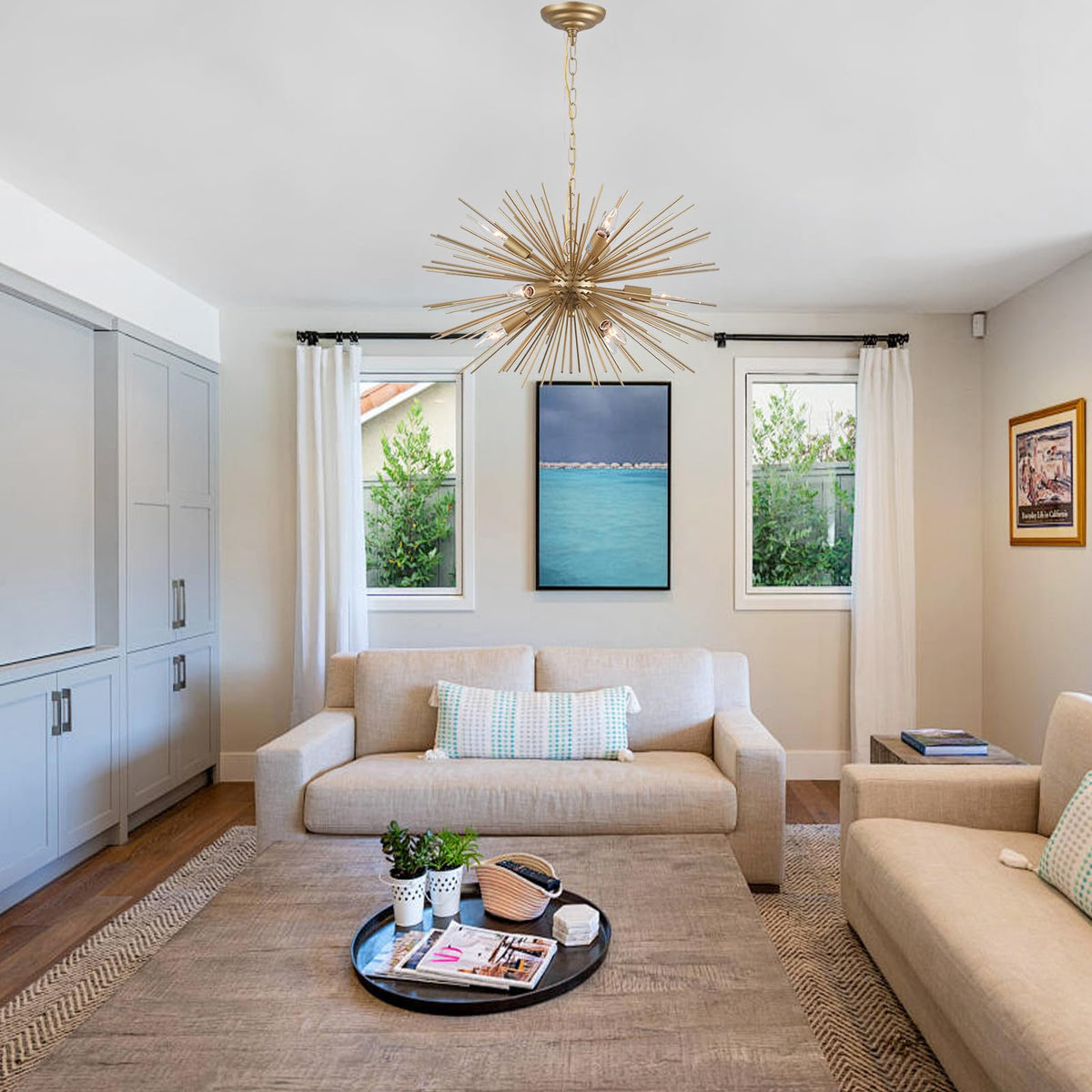 Cawabien Modern Starburst Chandelier:9 Lights Gold Sputnik Light Fixture For Dining Room Living Room,Bedroom, Kitchen Room, Entr