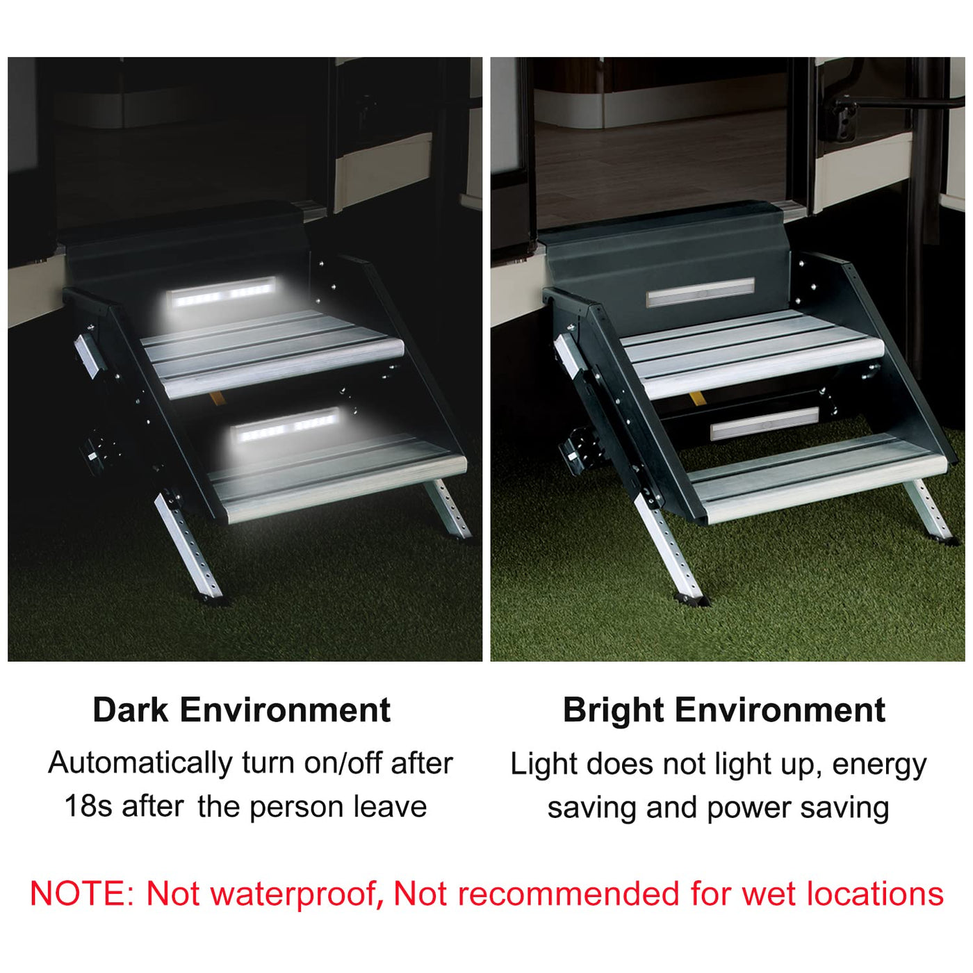Q: What is the brightness level of the LED lights?A: The RV Step Lights are equipped with ten premium LED beads, providing a bright light output without glare or flash, making them suitable for various outdoor and indoor lighting needs.