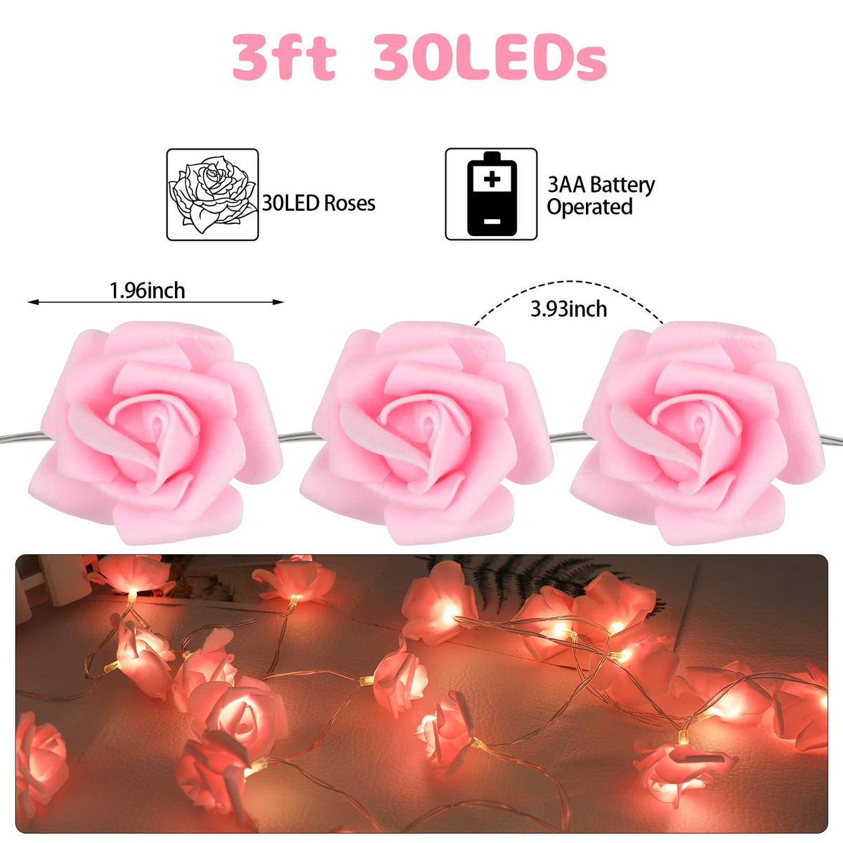 CCINEE 9.8Ft Pink LED Rose Flower String Lights?30 LED Flower Fairy String Lights Battery Operated Artificial Flowers Garland Li