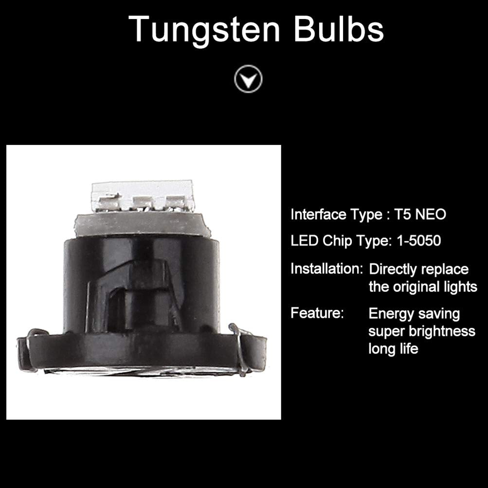 Pacakge Includes: 10x T5/T4.7 5050-SMD LED Neo Wedge Bulbs