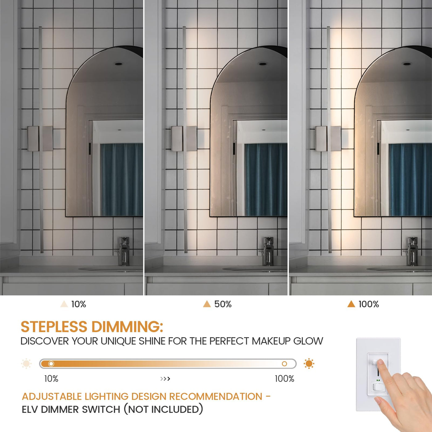 Ccycol Bathroom Lighting Fixtures Over Mirror - 39 Inch Brushed Nickel Vanity Lights For Bathroom 28W Dimming Led Vanity Light B