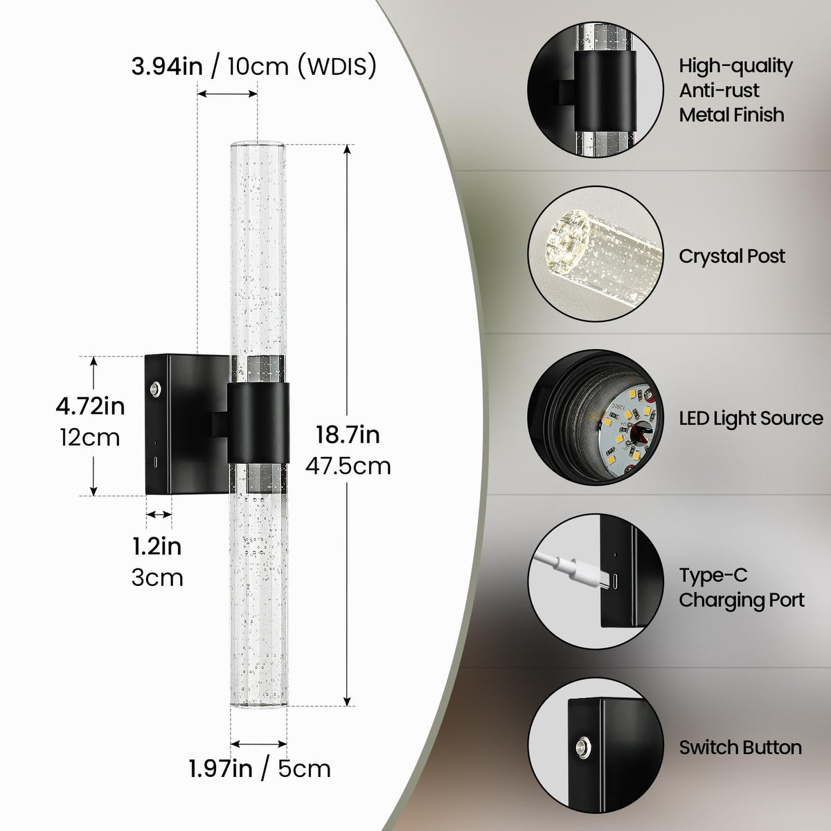 CCYCOL Black Wall Sconces Set of Two Battery Operated