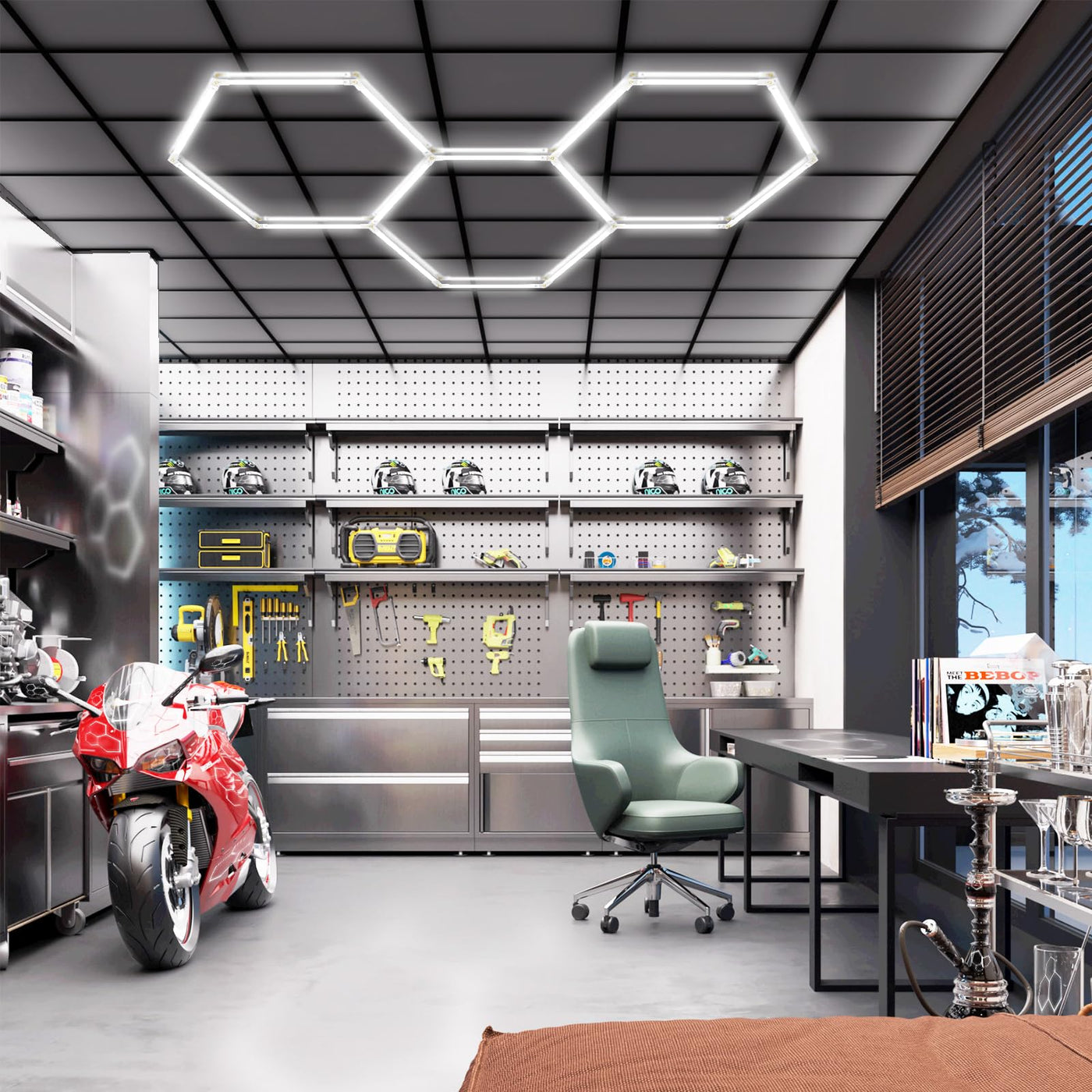 Cdkmax Led Hexagon Garage Light 3.0 Hex Grid Honeycomb Led Shop Light 135W 21400Lm 6500K Hexagon Lighting System Car Detailing S