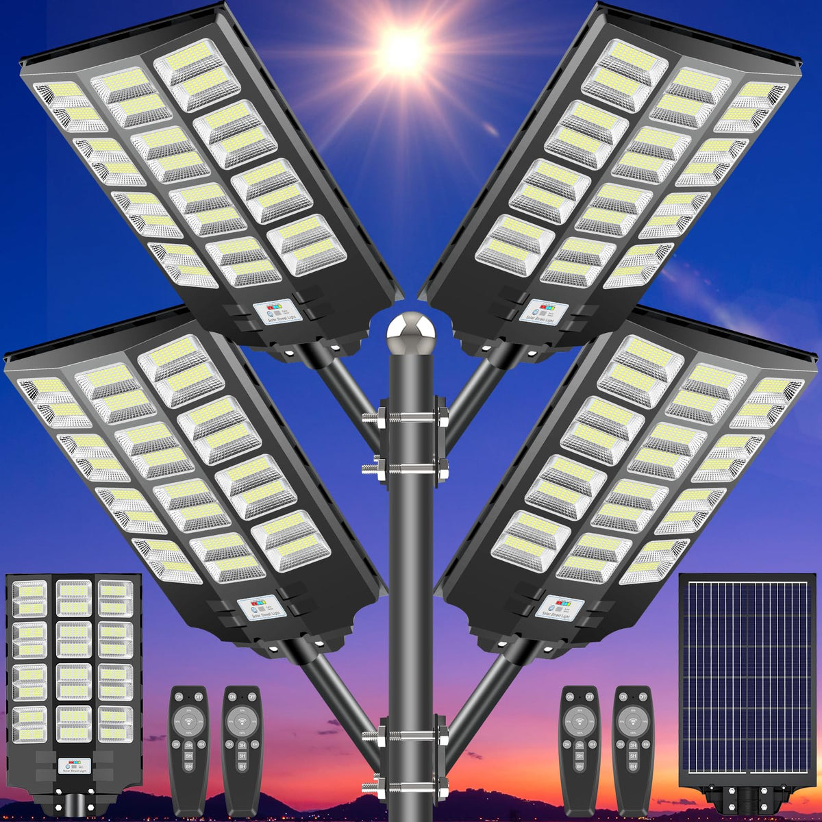Cedio Solar Street Lights 4600W 300000 Lumens Led, Ip66 Waterproof, Dusk To Dawn, 4 Pack