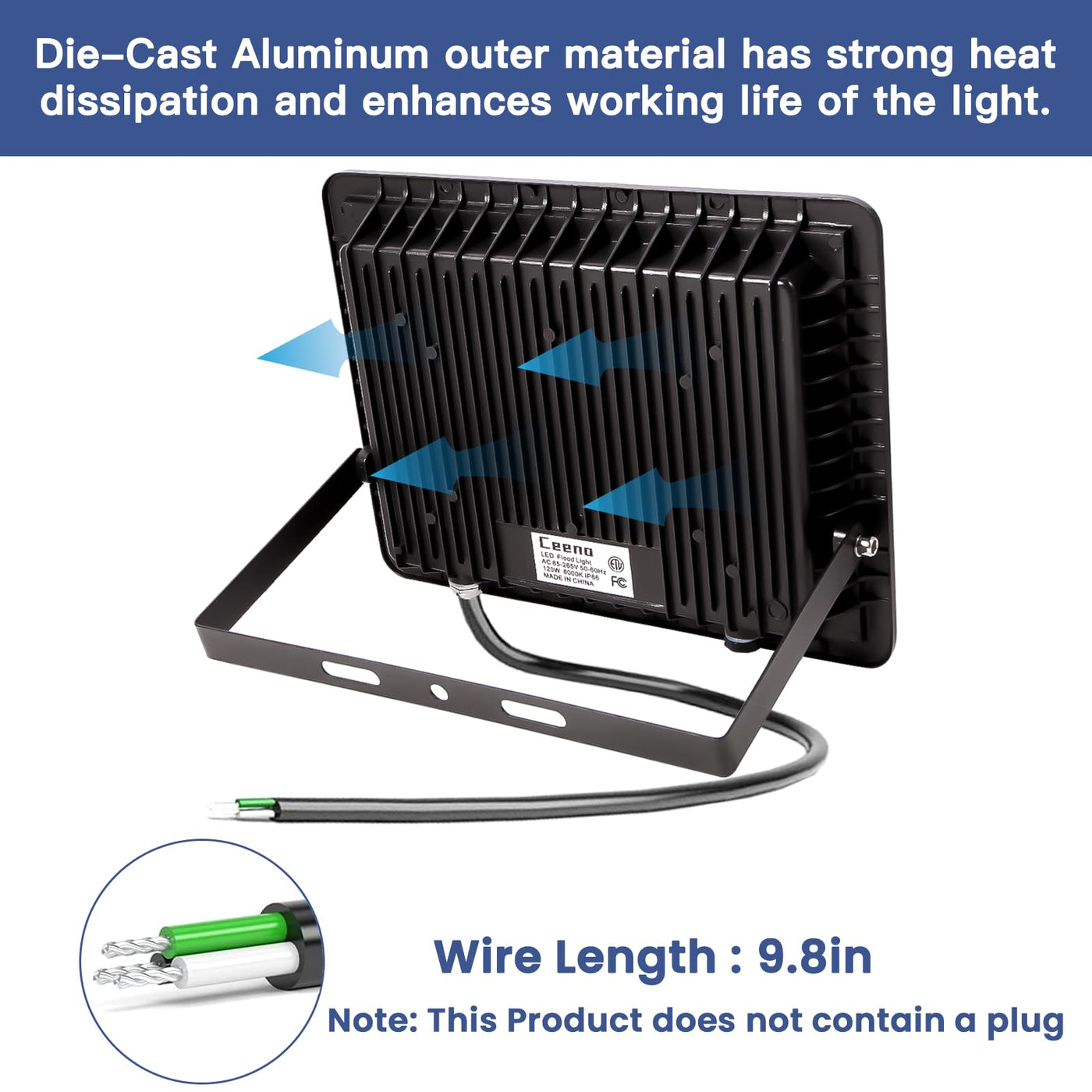 Ceena 2 Pack 120W Hardwired Led Flood Light Outdoor,12000Lm Super Bright Led Work Lights,6000K Daylight White,Ip66 Waterproof Security Lights For Garage,Backyard,Patio,Playground