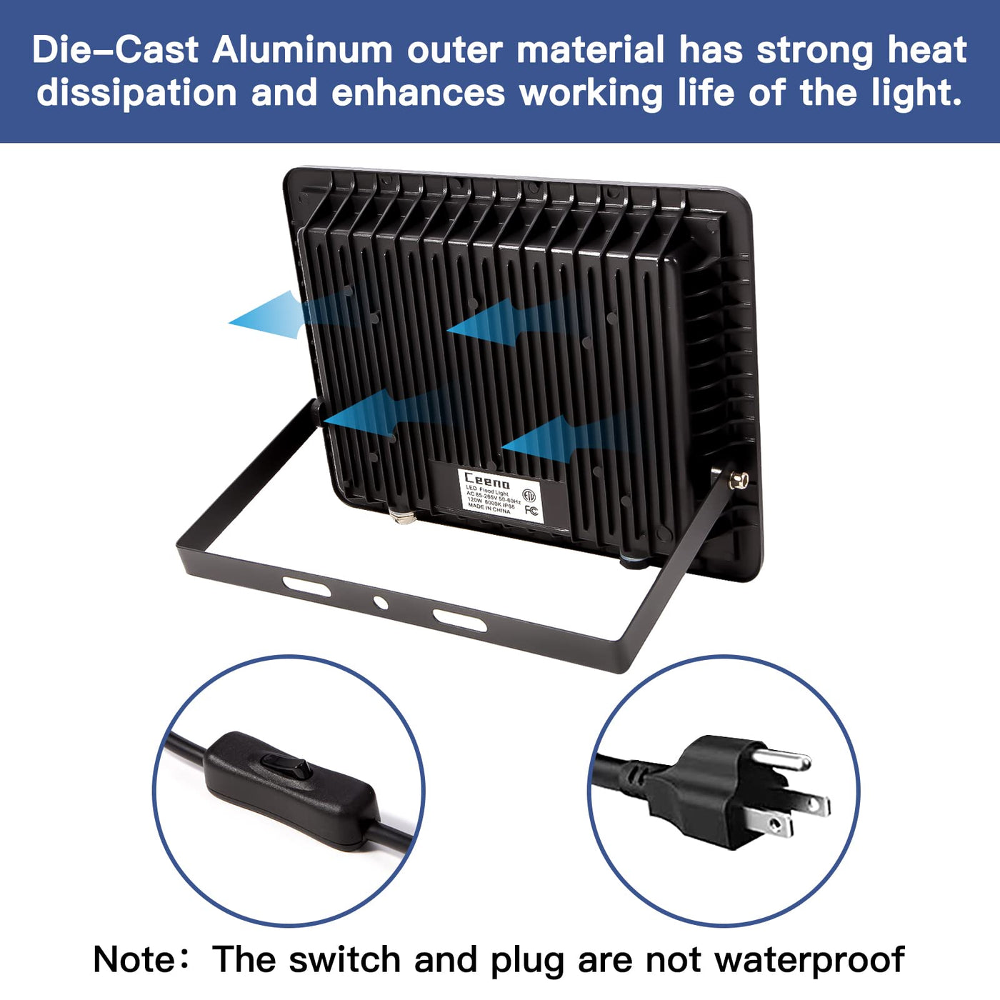 Q: Is the Ceena flood light energy-efficient compared to traditional lighting?A: Yes, this LED flood light operates on AC 85-265V and is equivalent to a 480W traditional halogen light, saving more than 80% of electricity, which makes it a highly energy-efficient choice.