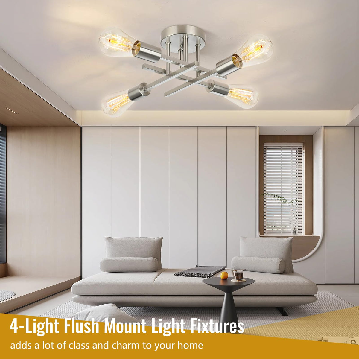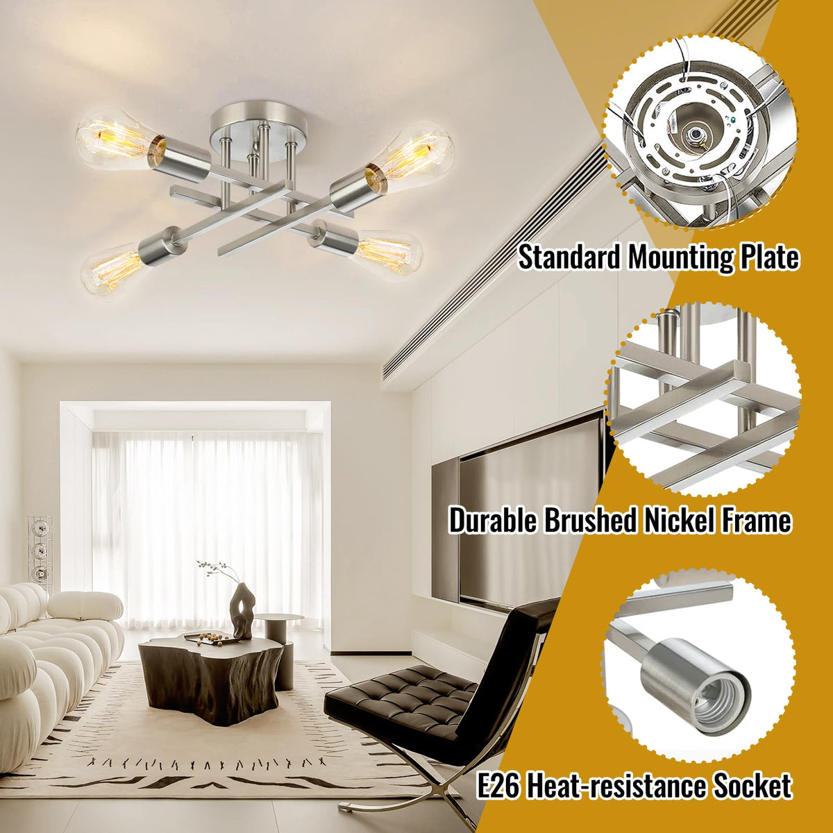 Ceiling Light Dining Room Light Fixture With E26 Base Semi Flush Mount Ceiling Light Fixture Kitchen Lighting Fixtures Ceiling 4-Light Matte Nickle Chandelier For Bedroom