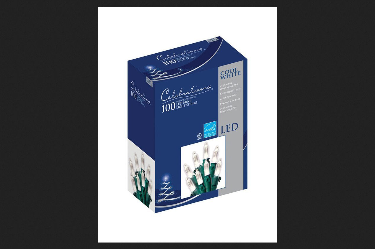 Q: What are the specifications of the Celebrations LED Light Set?A: The Celebrations LED Light Set features 100 white bulbs, is UL Listed for safety, and is designed for indoor use. The item measures 7.01 inches in length and 5.51 inches in width, made from durable plastic material.