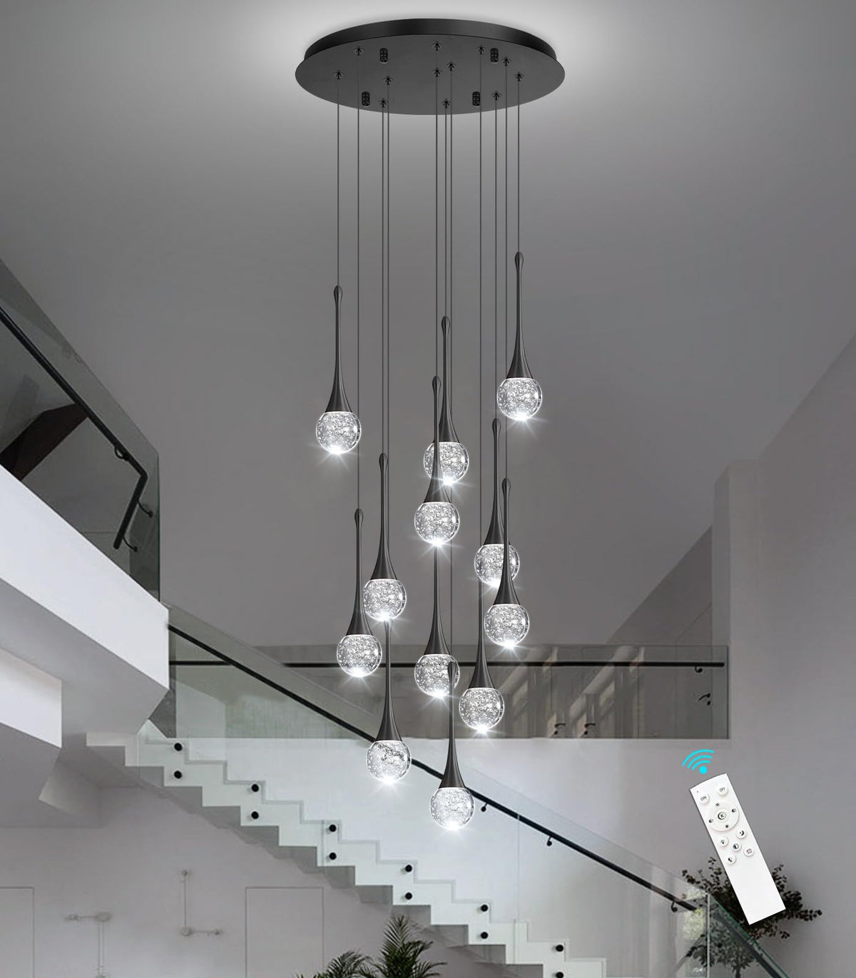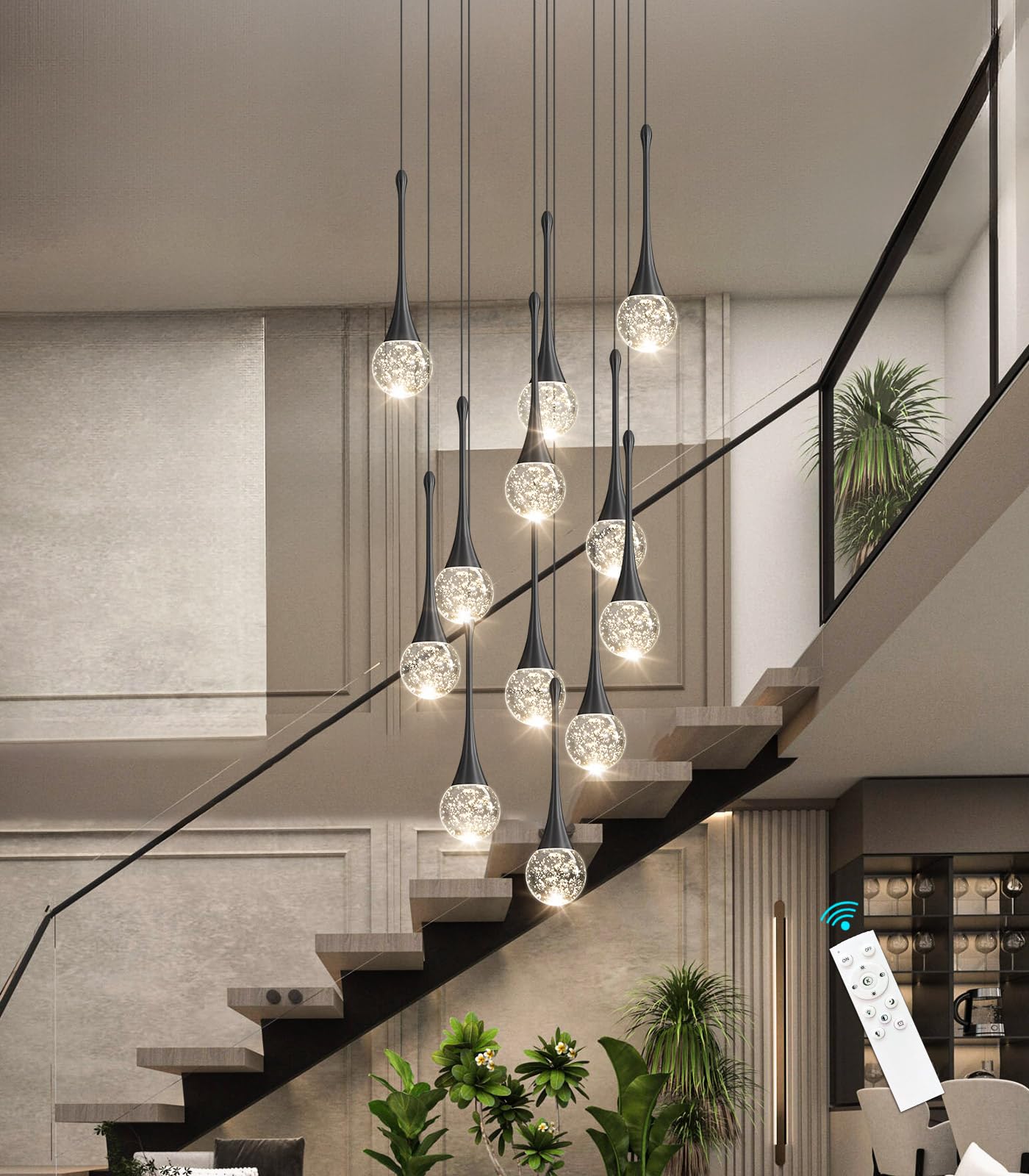 Cenozo 118 Inches Modern Glam Crystal Chandelier For High Ceiling Led Dimmable Ceiling Pendant Light Staircase Foyer Enterway Li