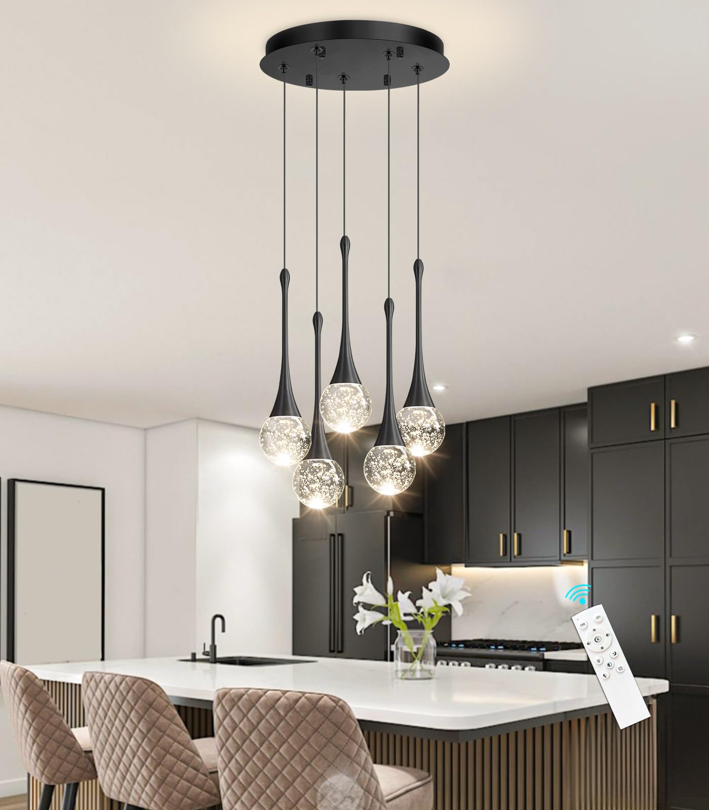 Cenzoz 5-Lights Modern Pendant Lights For Kitchen Island Led Dimmable Chandelier Crystal Glam Ceiling Pendant Lighting For Dinin