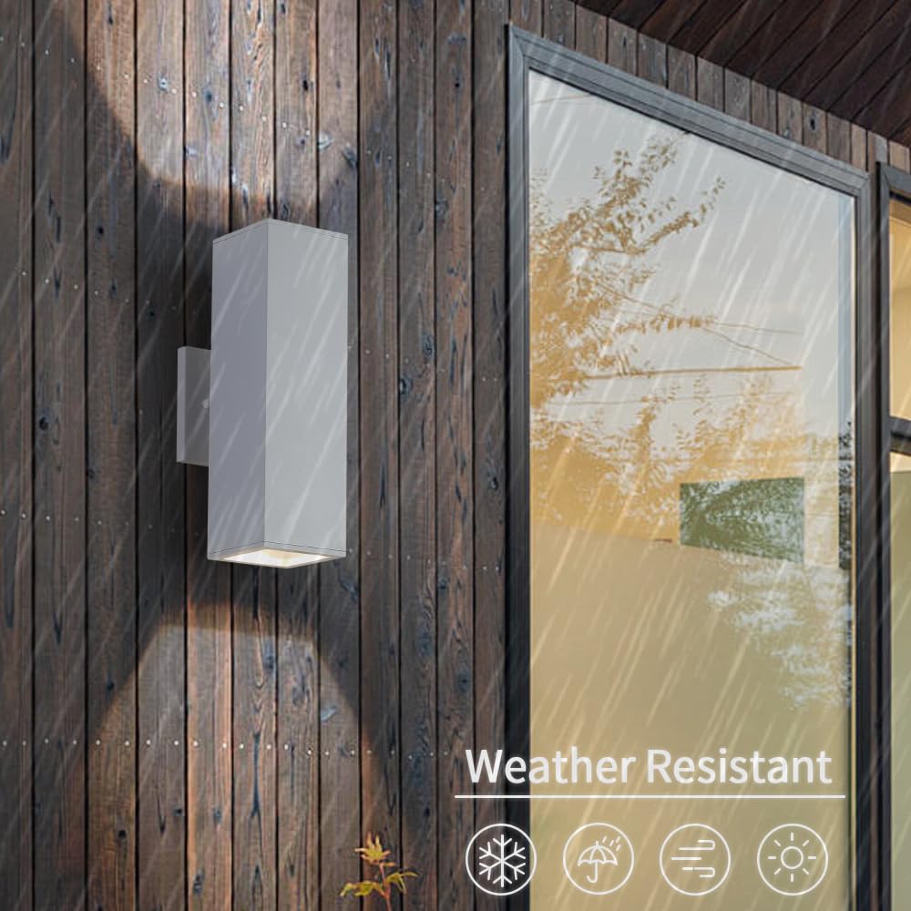 - **Sleek Modern Design**: Featuring a contemporary square shape with a matte white finish, this outdoor sconce adds a touch of sophistication to any exterior wall. Its minimalist design seamlessly integrates into a variety of architectural styles.