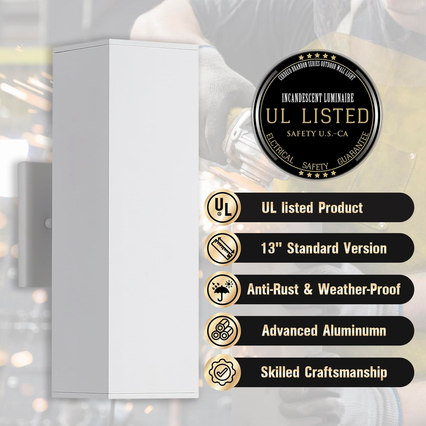 Cerdeco Aluminum Outdoor Wall Light Sconce, Up Down Matte White, Ul Listed Exterior Fixture