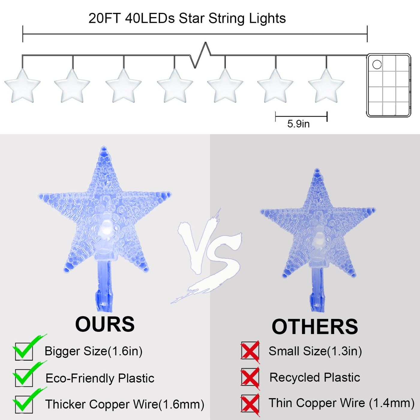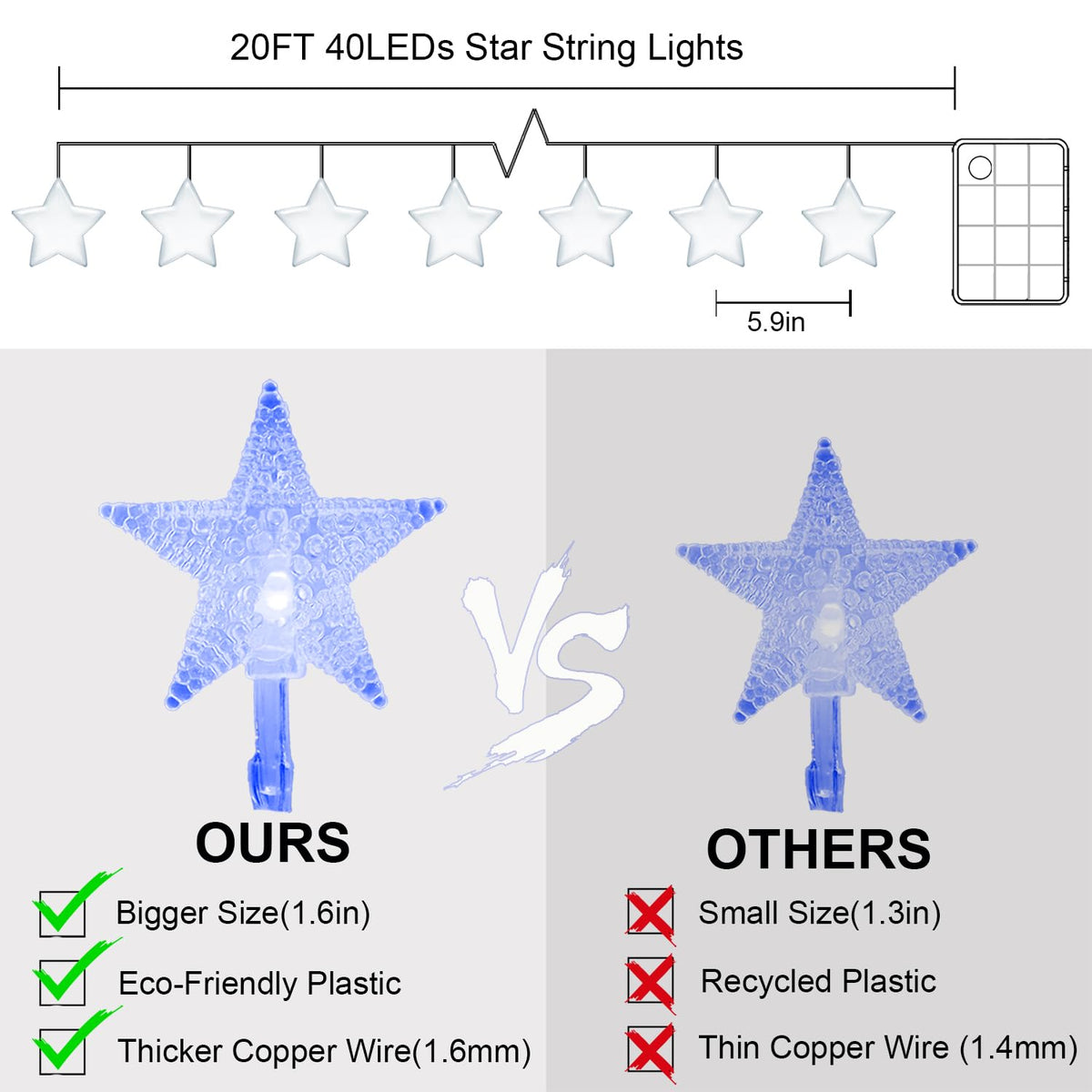 Cesof Blue Christmas Star String Lights Decorations, 20 Ft 40 Led Battery Operated Twinkle Lights Cute Hanging Star Fairy Light For Bedroom Room Car Party Home Indoor Outdoor Xmas Tree Decor