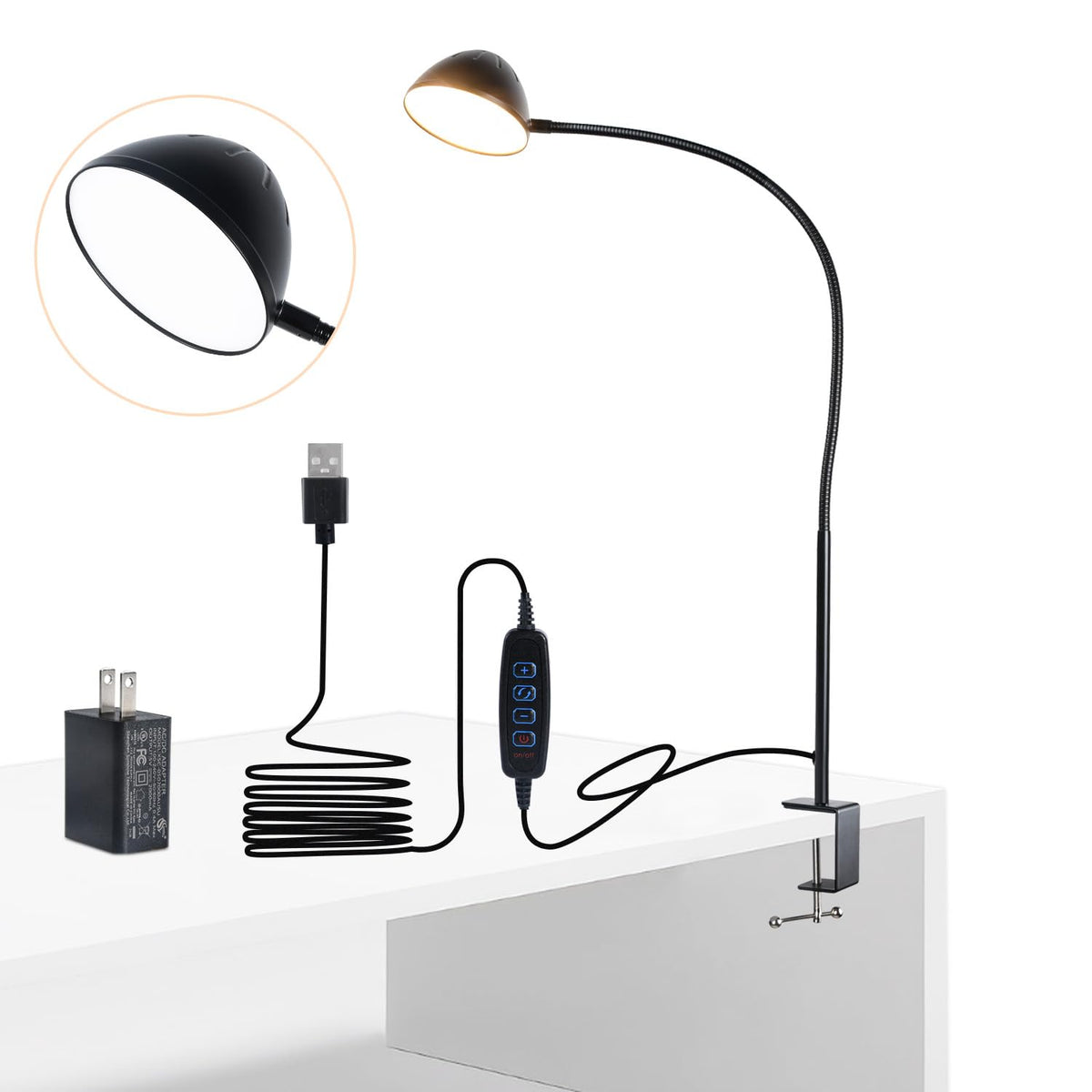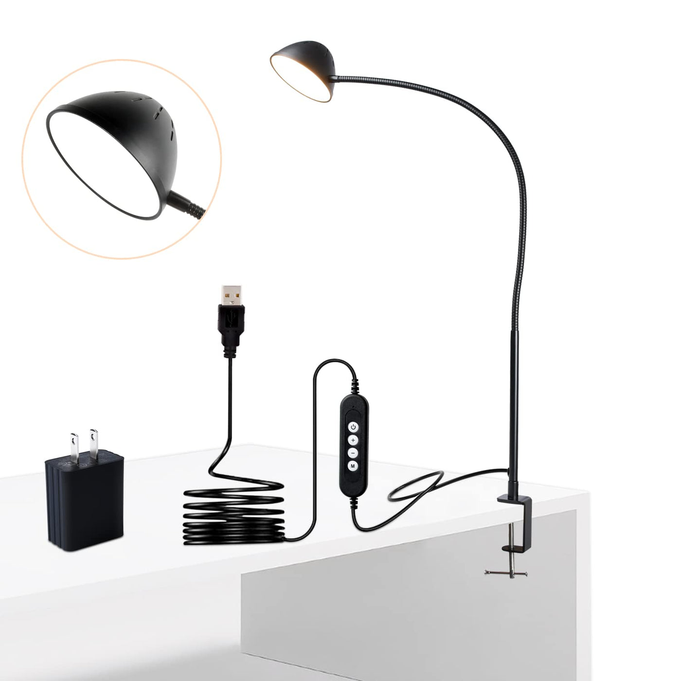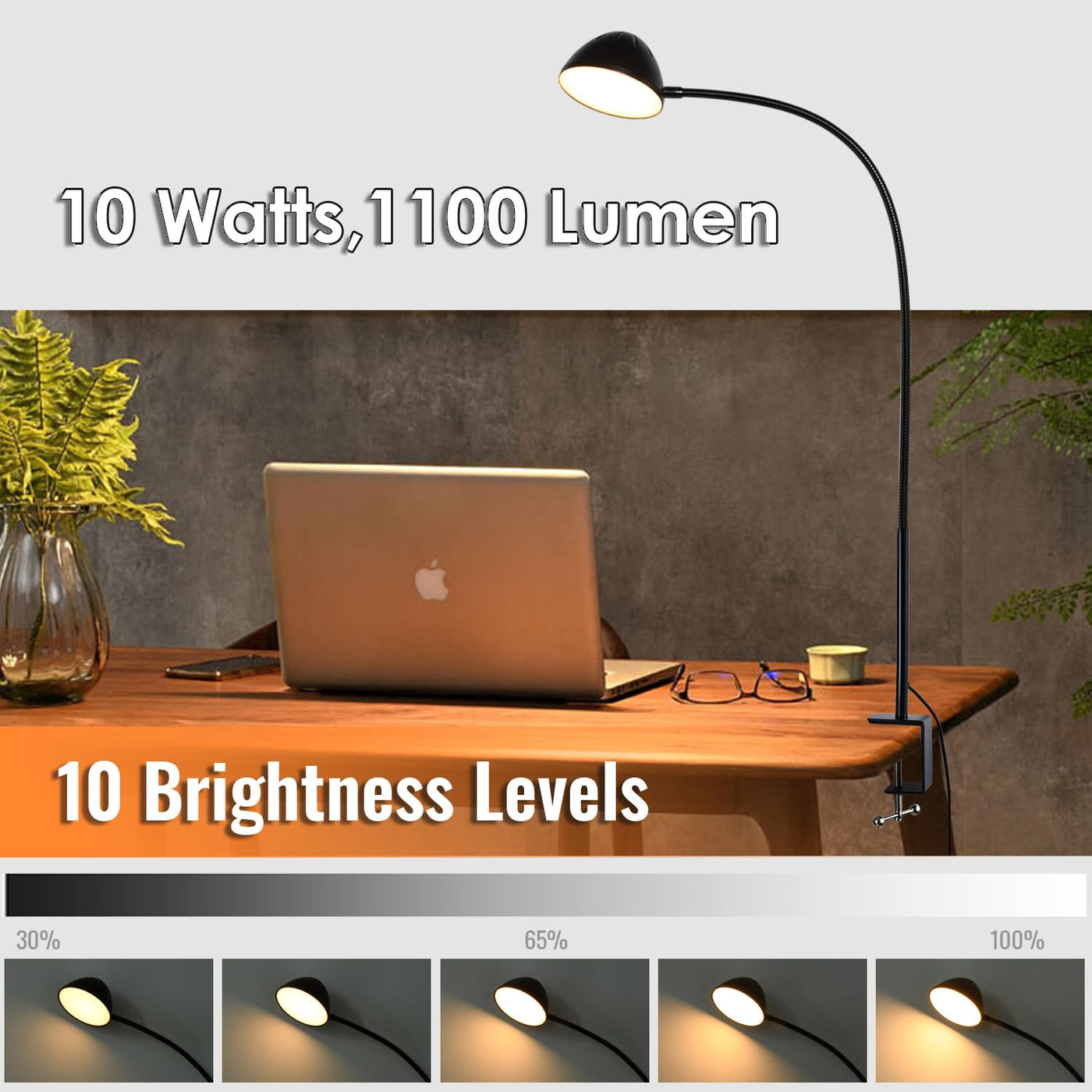 Cesunlight 10W Clamp Desk Lamp, 3 Color Modes, 10 Brightness Levels, Flexible Gooseneck, Black