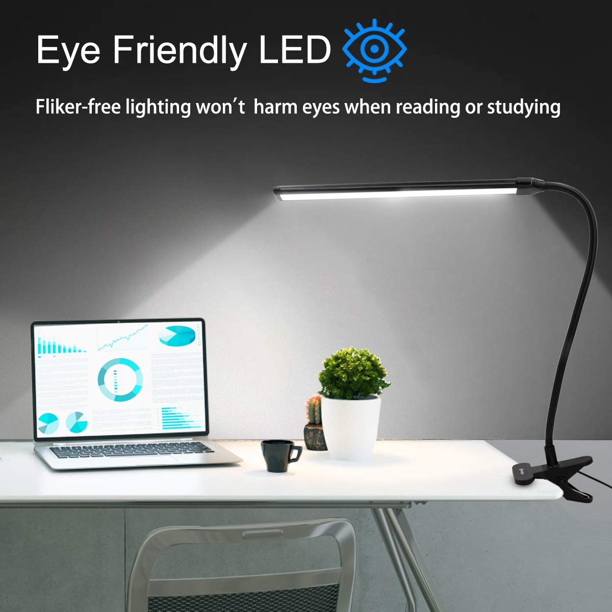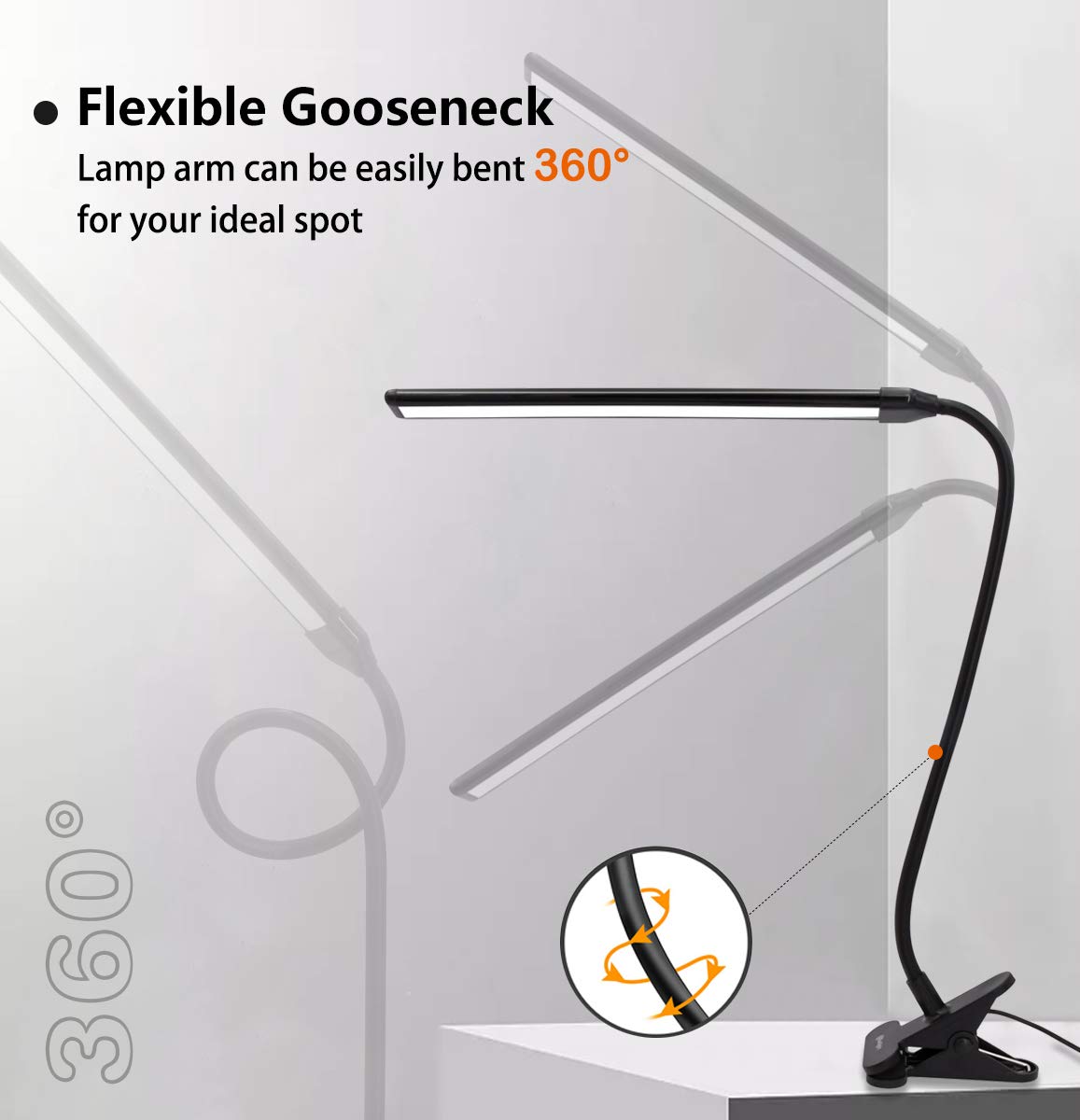 - **Strong Clamp with 2.2 Inches Width:** Designed with a robust clamp that securely attaches to surfaces up to 2.2 inches thick, this lamp is versatile enough for desks, bed frames, or headboards without leaving scratches.