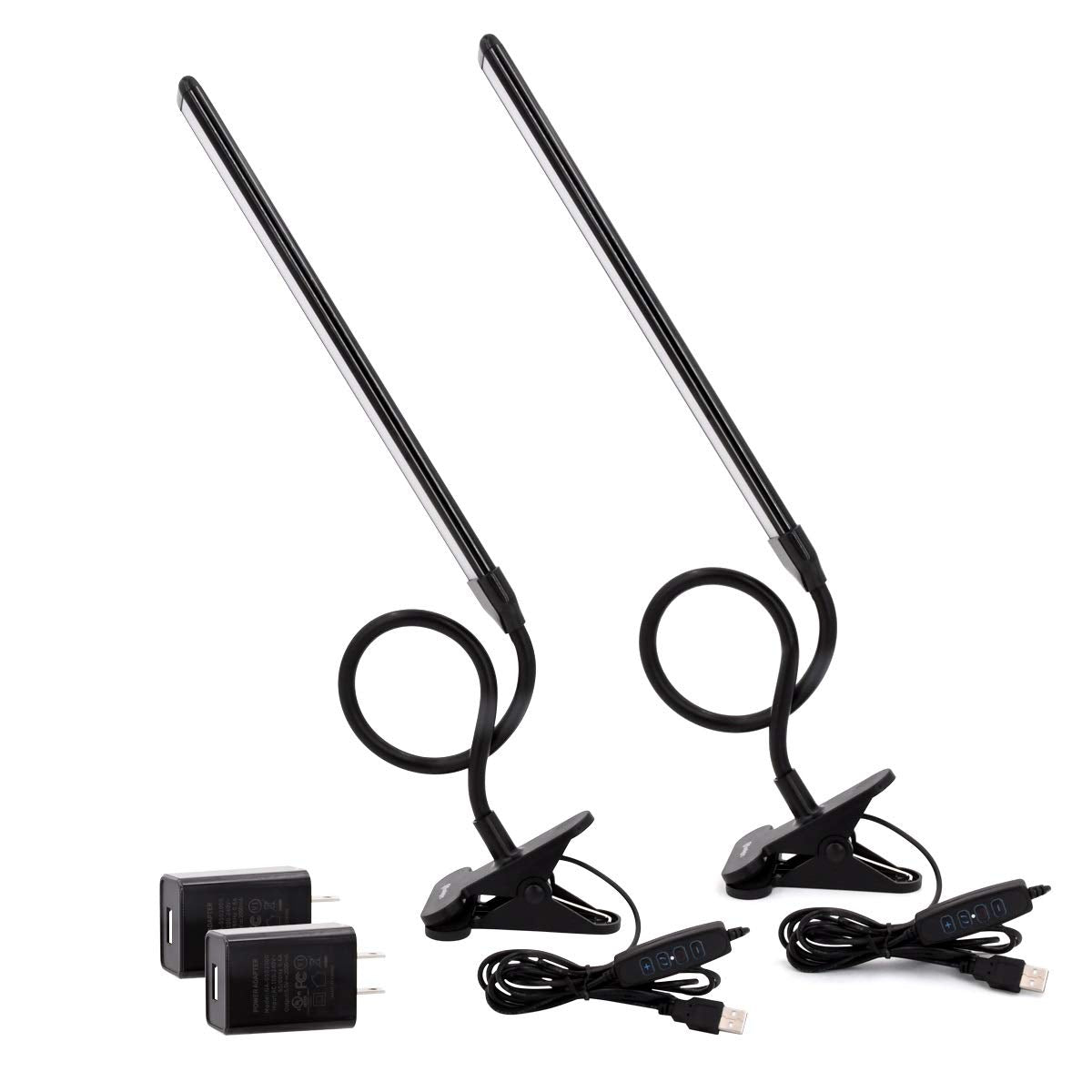 Cesunlight Clip Light - 3 Color Temperatures, 10 Brightness Levels, Usb Powered, Pack Of 2, Black