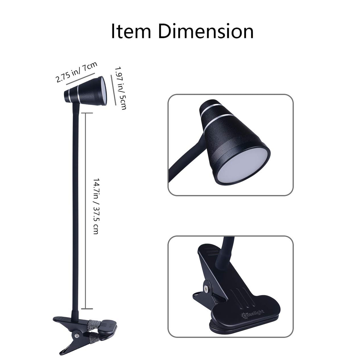 ?3 Color Temperature?This zoomable spotlight has 3 color modes, 3000K warm light, 4500K warm-white light and 6500k cool light. Clip on headboard and switch it on soft warm light, it is the perfect bed light for bed reading. As the USB desk lamp, adjust it on daylight, ideal for studying and night work, computer lighting. Need light to see tiny things clearly? You can zoom the light to be more concentrated and you will find out cool light (6500K) would be very useful.|?10 Brightness Levels & 2 Watts?This clip spot light features stepless dimming,10 brightness levels for each color mode, total 10x3=30 illumination modes, it can be as bedside lamp. You will find this clip light a great convenience to use, "+" and "-" control brightness up and down. This clip on bedside light sources is one high brightness COB, ideal for poor eyesight and book reading on bed, no blue light hazard, no flickering, no dizzy light, reducing eye fatigue.|?2 Inches Clamp Width & 15 Inches Flexible Gooseneck?The metal clip of this table lamp has the advantages of large clamping width, sturdy clamping force, it can tightly clip on any boards thickness within 2 inches such as workbench, headboard, bedstead etc. Strong clamping force, but no scratches will be left for having the foam pad. The clamp lamp arm is made by metal flexible tube, it is easy to twist the gooseneck without any noise and set the right angle and hold position firmly.|?2 Inches Clamp Width & 15 Inches Flexible Gooseneck?The metal clip of this table lamp has the advantages of large clamping width, sturdy clamping force, it can tightly clip on any boards thickness within 2 inches such as workbench, headboard, bedstead etc. Strong clamping force, but no scratches will be left for having the foam pad. The clamp lamp arm is made by metal flexible tube, it is easy to twist the gooseneck without any noise and set the right angle and hold position firmly.|?24 Hours Email Reply? -24 hours email reply, with our amazing versatile zoomable clip on spot light, your any questions related to the product will got a quick response, this is because we place a premium on customer satisfaction.