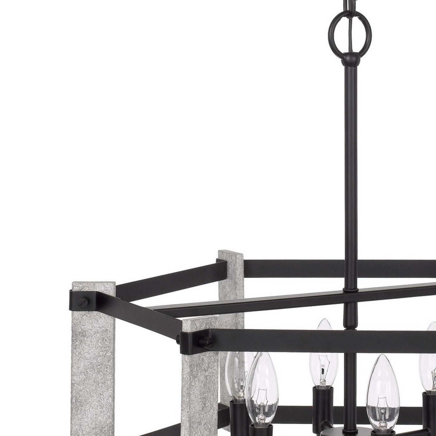 Chandelier with Hexagonal Cage Design Metal Frame, Gray and Black