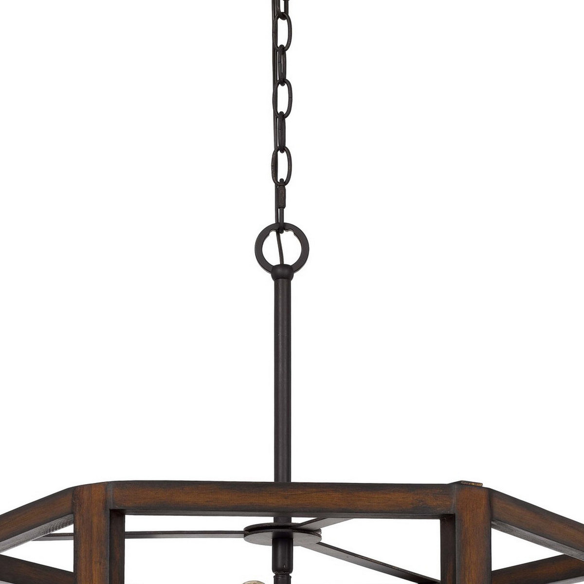 Chandelier with Hexagonal Open Wooden Frame and Hanging Chain, Brown