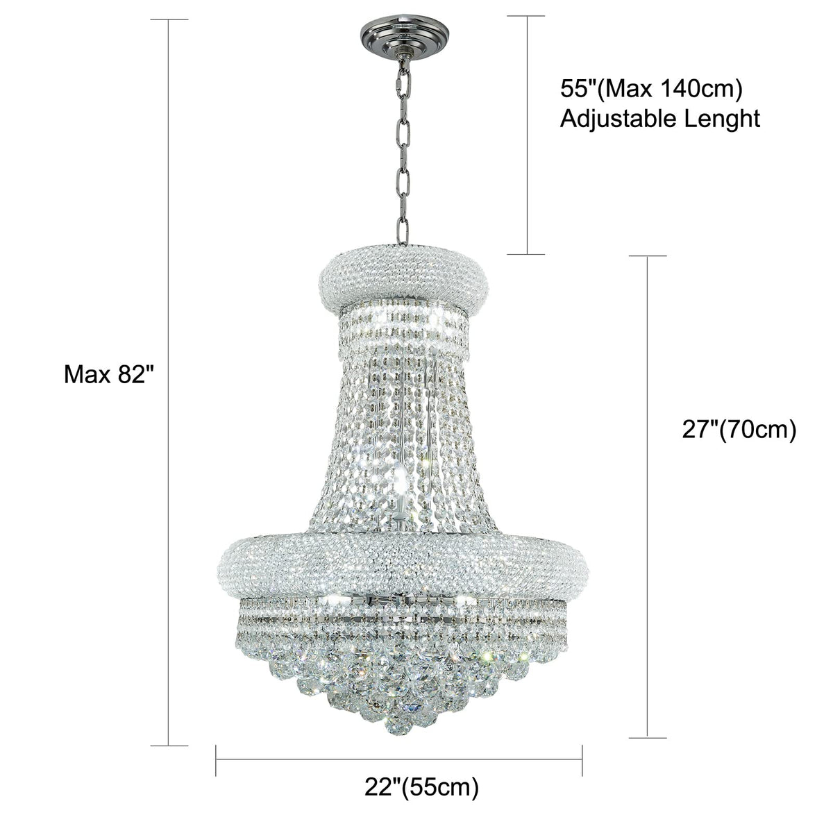 Chandiry 12 Lights Chrome Finish Empire Crystal Chandelier Lighting For Dining Room Living Room Foyer Hallway Bedroom Entryway (Dia 22'')