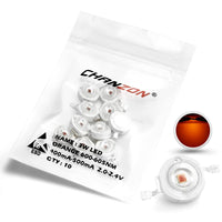 Specification:Quantity: 10 pieces / PackBrand: ChanzonPower: 3 Watt (Max)Emitting Color: OrangeRecommended Current: 450mAForward Voltage: 2.0-2.4VLuminous Flux: 90-100LMEmitting Angle: 120-140 degreeWith Double Golden Wire (99.99%) and Copper FrameKindly Reminder:Constant current LED drivers are recommended for high power COB LEDs.Working temperature should be less than 60 Degrees Celsius / (140 Fahrenheit) with a Heat Sink System.Please refer to the positive (anode +) and negative (cathode -) sign on Leds.Related Accessories:Constant current LED drivers (450mA Plastic Case): ? Search B01N25KD4X on AmazonConstant current LED drivers (450mA Aluminum Case Waterproof): ? Search B01MYBGU2X on AmazonConstant current LED drivers (450mA No Case only PCB Board): ? Search B01MSANI4E on AmazonLED Heat Sink Star Aluminum Base Plate: ? Search B06XKPNRWL on Amazon