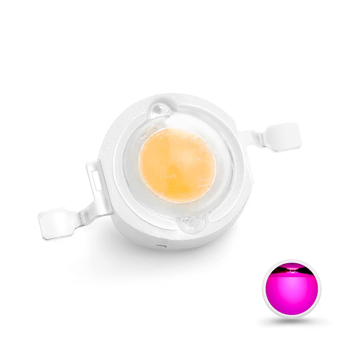 Specification:Quantity: 10 pieces / PackBrand: ChanzonPower: 3 Watt (Max)Emitting Color: PinkRecommended Current: 450mAForward Voltage: 3.0-3.4VLuminous Flux: 80-90LMEmitting Angle: 120-140 degreeWith Double Golden Wire (99.99%) and Copper FrameKindly Reminder:Constant current LED drivers are recommended for high power COB LEDs.Working temperature should be less than 60 Degrees Celsius / (140 Fahrenheit) with a Heat Sink System.Please refer to the positive (anode +) and negative (cathode -) sign on Leds.Related Accessories:Constant current LED drivers (450mA Plastic Case): ? Search B01N25KD4X on AmazonConstant current LED drivers (450mA Aluminum Case Waterproof): ? Search B01MYBGU2X on AmazonConstant current LED drivers (450mA No Case only PCB Board): ? Search B01MSANI4E on AmazonLED Heat Sink Star Aluminum Base Plate: ? Search B06XKPNRWL on Amazon