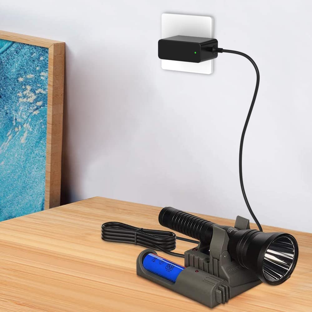 Q: What safety features does the flashlight power cord include?A: The flashlight power cord adapter is designed with multiple safety features, including overvoltage, overcurrent, overload, short circuit, and temperature protection. It is also RoHS, FCC, and CE listed, ensuring safe and reliable operation.