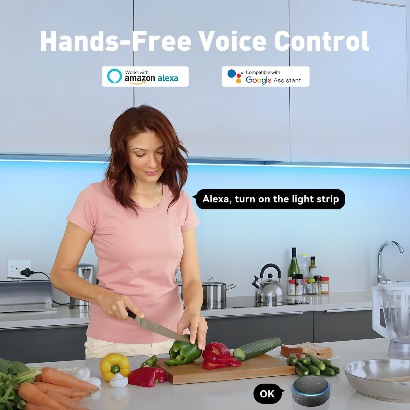 Q: Can the CHARKEE LED strip lights be controlled with voice commands?A: Yes, these LED strip lights are compatible with Alexa and Google Assistant, allowing for voice control.