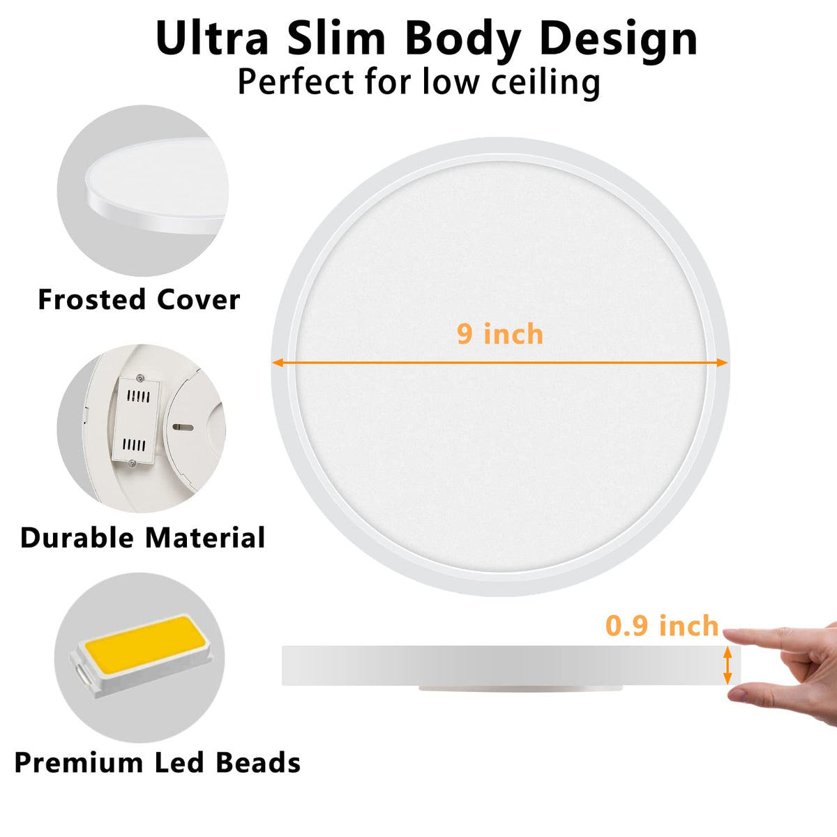 - **Ultra Slim Profile**: At just 0.9 inches thick, this ceiling light is perfect for low-ceiling spaces, making it ideal for bedrooms, kitchens, hallways, utility rooms, and more. Its sleek design complements modern interiors while offering powerful illumination.