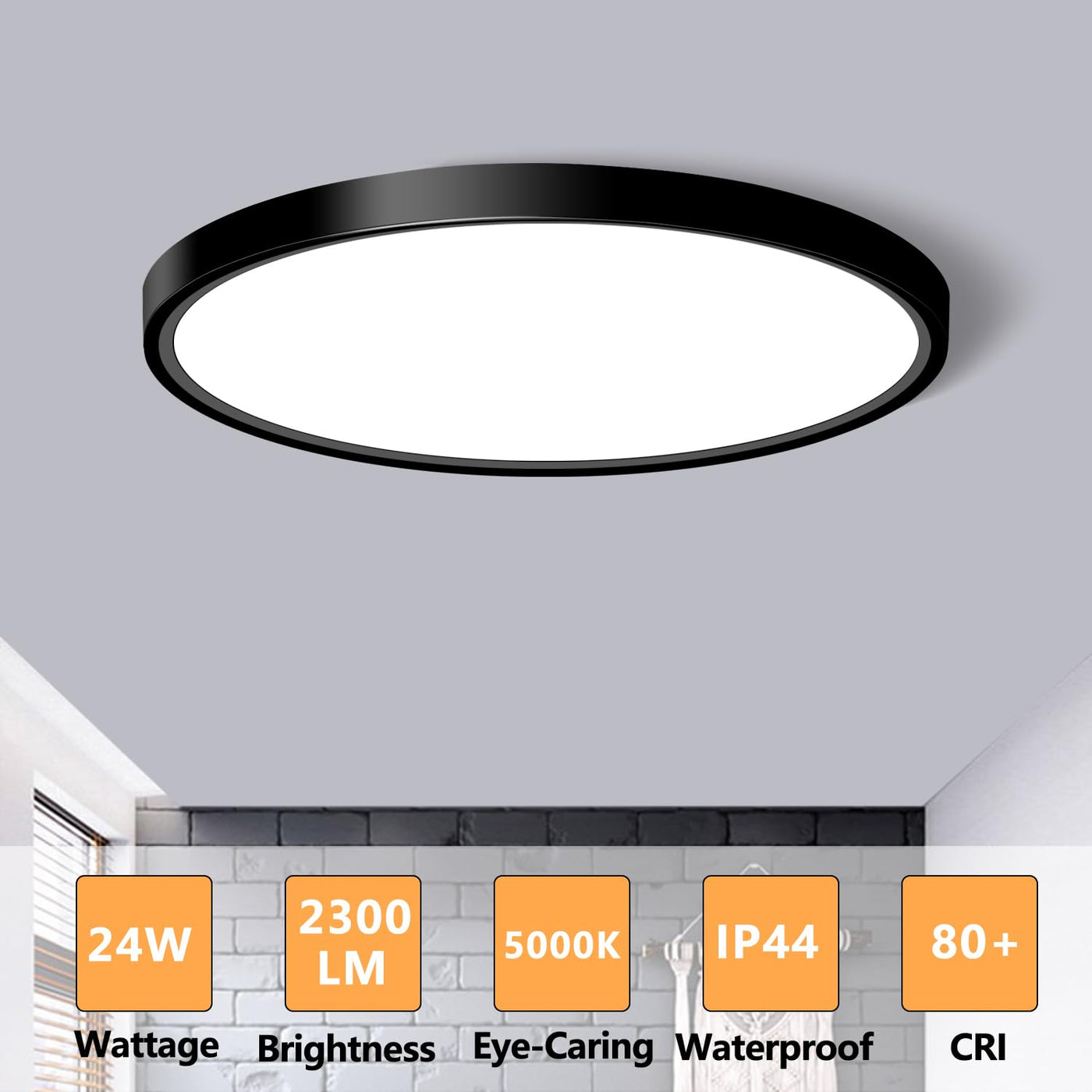 Charyjod 24W 2300Lm Slim Led Flush Mount Ceiling Light Fixture 5000K Daylight Energy Saving & Low Power Consumption: Our Flush Mount Led Ceiling Lights Produce Brilliant 6000K Daylight White Lighting Of 2300Lm, 24W Equivalent To A Traditional 180W Incandescent Bulb, To Illuminate Every Space In Your House, Saving Up 90%. Dustproof Design: Adopting Built-In Sealed Structure, These Ceiling Lights Can Prevent Dust And Spot For Your Family To Create A Clean And Comfortable Home Environment. Excellent Performance Of Dustproof, No Need To Clean. Protect Eyes: Our Non-Dimmable Led Ceiling Light Emits Soft And Uniform Light Without Flickering, Protecting Your Eyes From Harsh And Glare Lights. Ultra-Thin: The Led Ceiling Light Is Only 12 Inch Thick. The Ultra-Thin Design Says Goodbye To The Feeling Of An Overwhelming Room And Creates A Relaxing Living Environment. This Is Perfect For Low Ceilings. Multiple Applications: This Round Led Flush Mount Ceiling Light Has A Modern Minimalist Design And Practical Functions, It Is Greatly Suitable For Various Scenes In Your Bedroom, Living Room, Dining Room, Kitchen, Closet, Garage, Corridor, Warehouse, Office, Stair, Etc.. Specifications: Wattage: 24W Voltage: 85-265V(Including 110V-120V) Cct: 6000K Lifespan:25,000Hours Brightness: 2300 Lumen Dimension: 12*12*0.9In Color Temperature: 5000K Cri: 85+ Package Included: 1 X 24W Led Ceiling Light 1 X Base 2 X Wire Connector 2 X Flat Head Screw 4 X Tappered Tapping Screw 4 X Expansion Tube 1 X Installation Manual If You Have Any Question About The Light Fixtures Ceiling Mount, Please Feel Free To Contact Us Anytime.