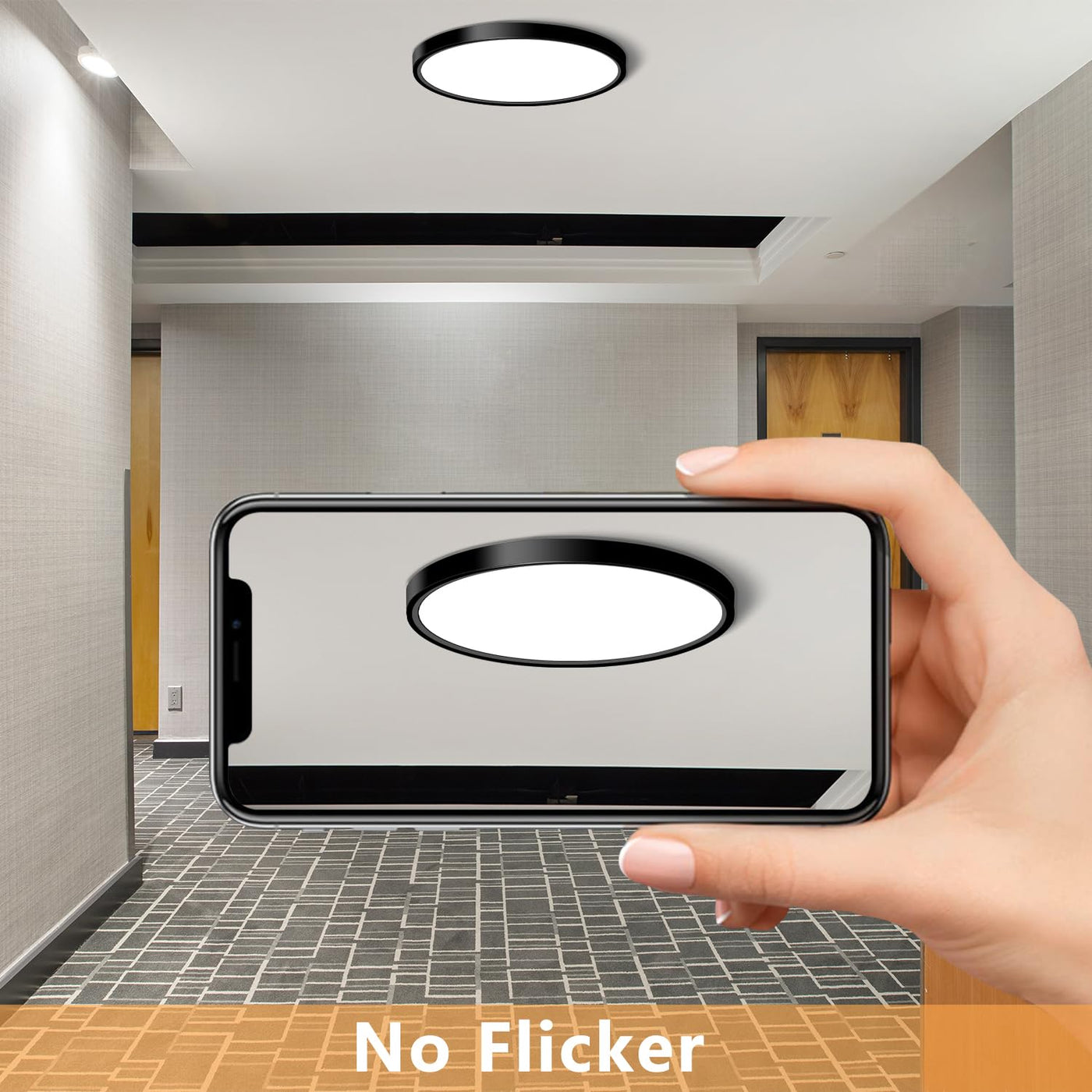 Q: Does the CHARYJOD ceiling light flicker or hum?A: No, this LED ceiling light is designed to provide a uniform light output without flickering or humming noises, ensuring a comfortable lighting experience that protects your eyes from harsh glare.