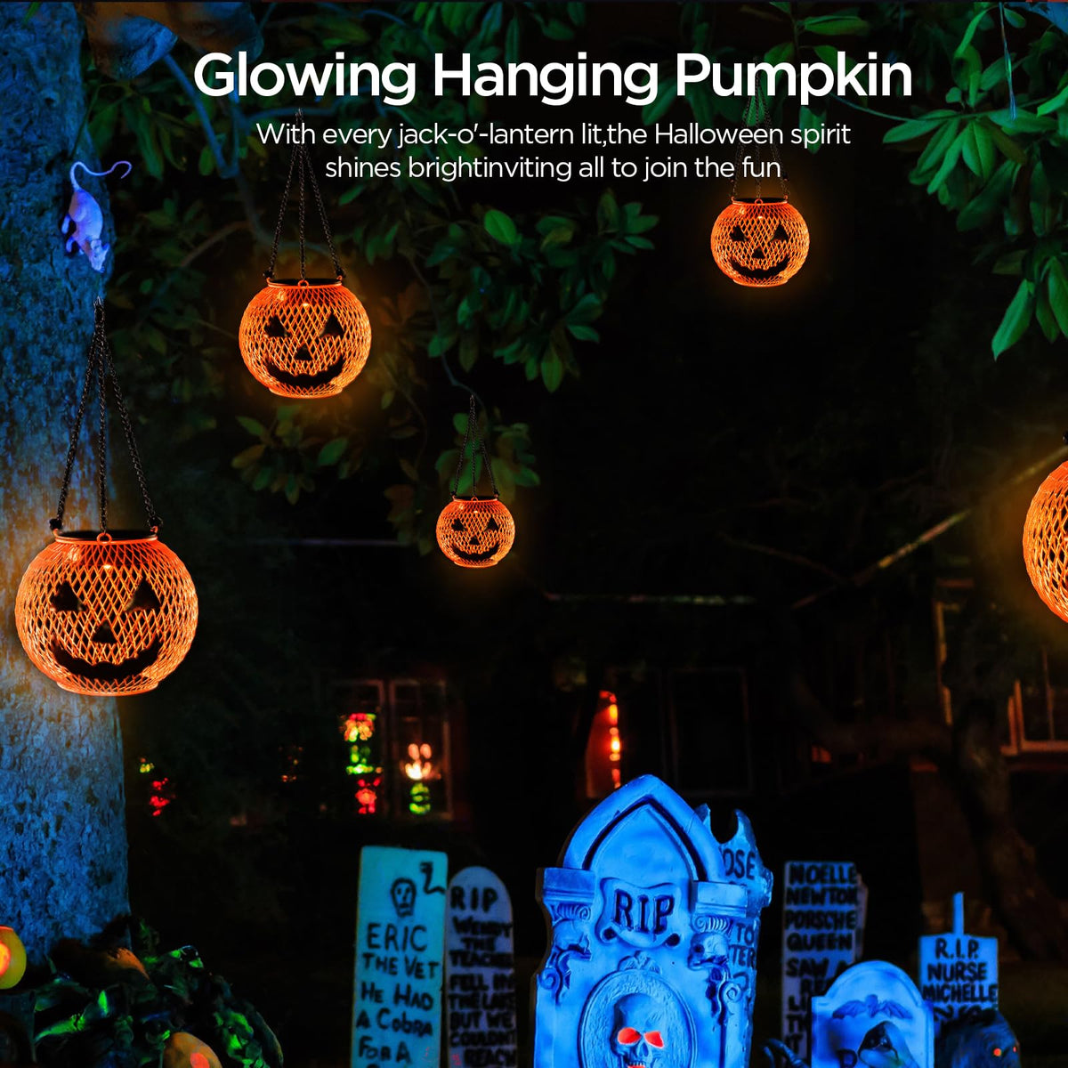 Q: What is the size of each pumpkin lantern?A: The specific size of each pumpkin lantern is not provided, but they are designed to be visually impactful for outdoor decoration, suitable for porches, yards, and gardens.