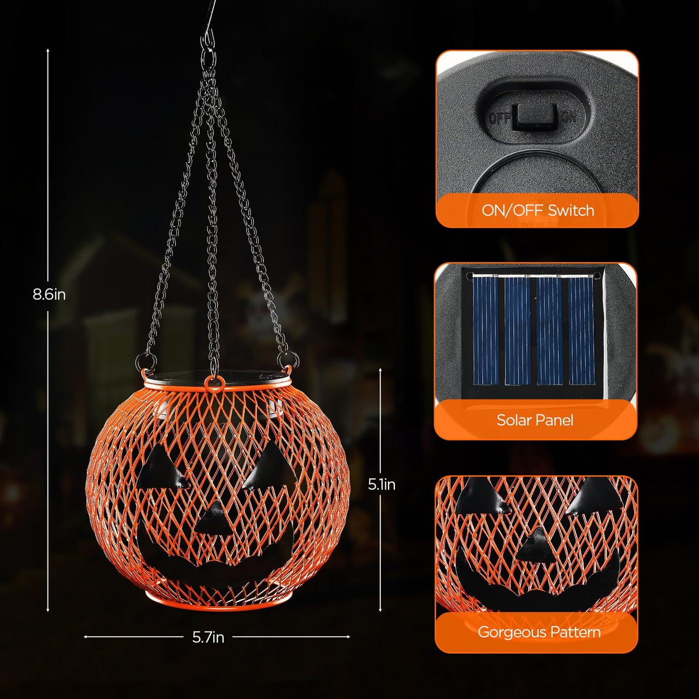 Crafted from durable iron, each pumpkin lantern features a robust construction that ensures longevity and stability. The solar-powered functionality allows for easy placement without the need for wiring; simply position them in sunlight during the day, and they will illuminate automatically at night. With their vibrant orange color, these lanterns create a cheerful and spooky atmosphere, making them perfect for Halloween parties or trick-or-treat nights.