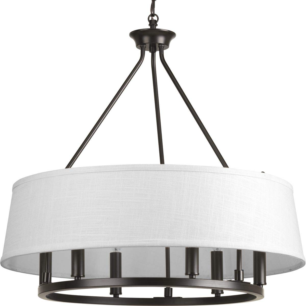 Fall In Love With A Fresh Chandelier Design From The Cherish Collection. A Crisp White Summer Linen Shade Creates A Beautiful Muted Glow. Mixed-Metal Styling Is Featured With A Circular Frame Coated In A Handsome Antique Bronze Finish Accented With A Choice Of Golden Brass Or Antique Bronze Light Bases (Both Included). Compatible With Dimmable Bulbs.