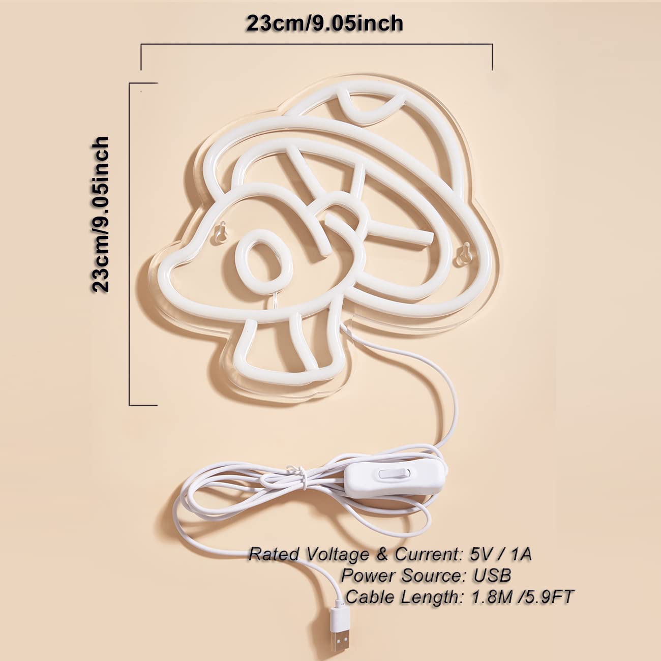 - **CUTE UNIQUE DESIGN**: This 3D wall art neon sign features a delightful mushroom shape, measuring 9.05 x 8.66 x 0.39 inches, adding a whimsical touch to your decor while enhancing the aesthetic appeal of any space.