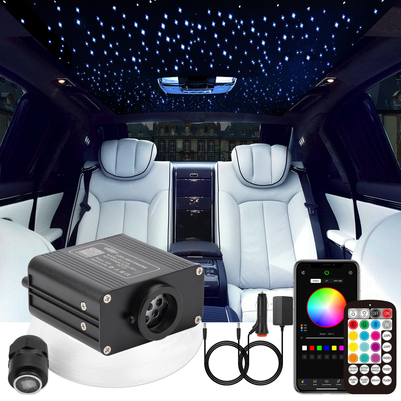 Chinly Twinkle 460Pcs 9.8Ft 0.03In Fiber Optic Lights Starlight Headliner Kit, Music Mode Bluetooth App Control Remote, Rgbw Sta