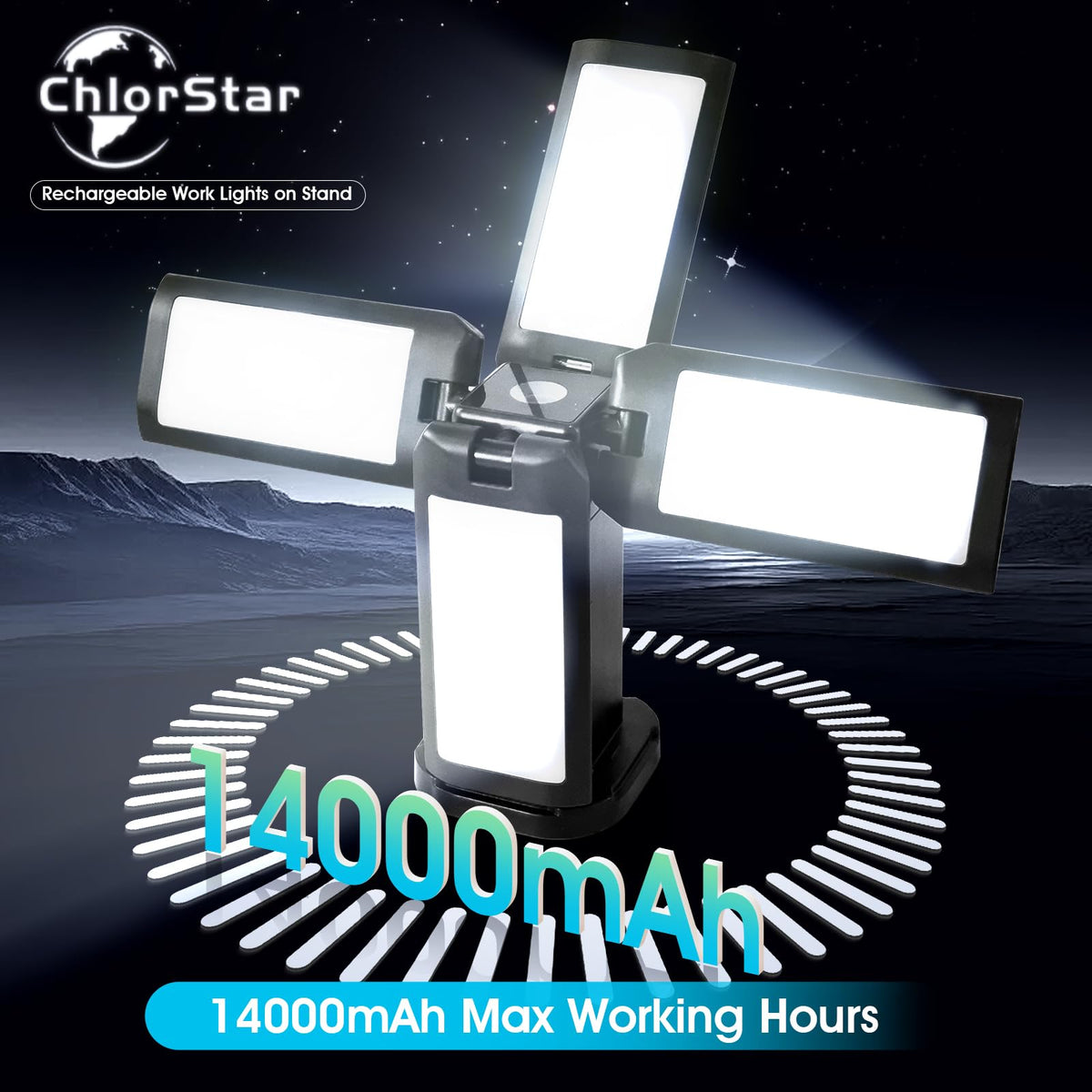 Chlorstar 14000Mah Rechargeable Work Lights With Stand Camping Light Stand, Rechargeable Work Light Tripod Stand, 270 Adjustable