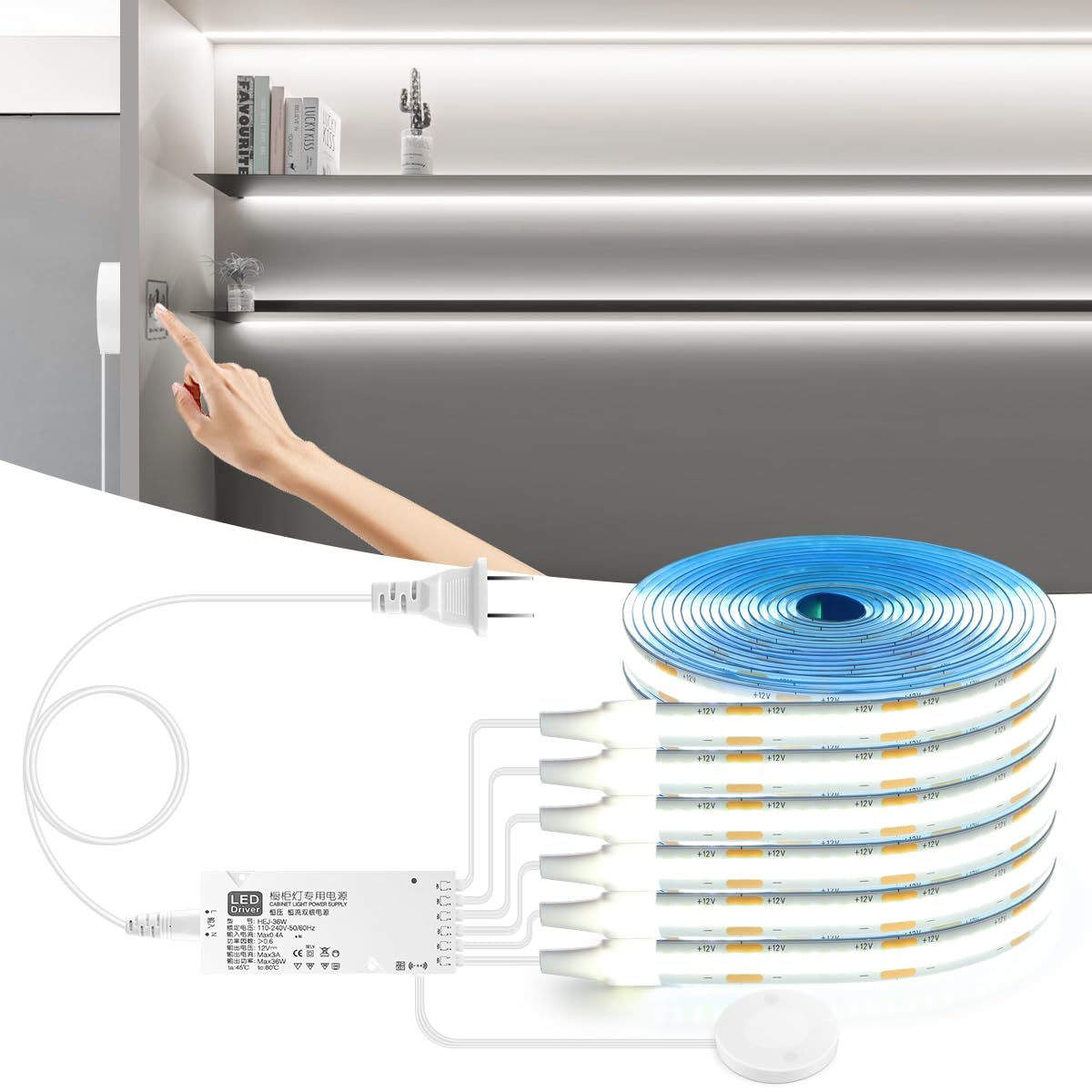 Chnmalitai Under Cabinet Led Lighting Kit 6 Pcs 6500K White Led Strip Lights Penetrable Wood Touch Dimmable Cob Led Strip With 60W Adapter For Kitchen Cabinet Counter Shelf Tv Back Showcase