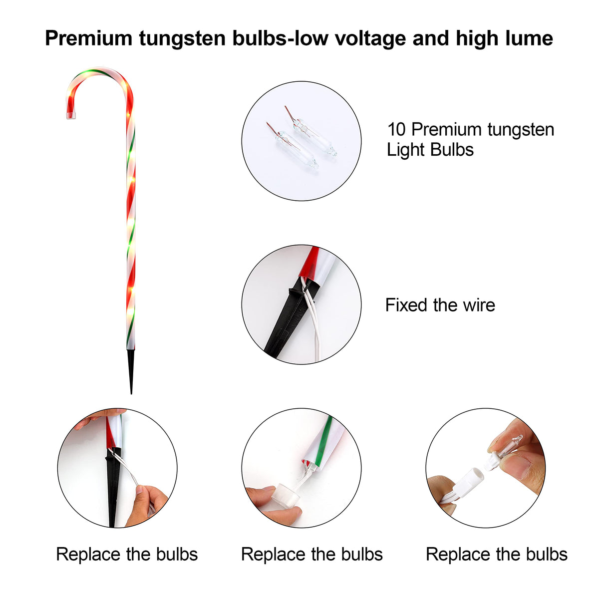 Q: What should I do if I have issues with the lights or need assistance?A: If you have any questions or experience any problems with the Christmas Candy Cane Pathway Lights, you can contact our customer service for prompt assistance, as we are dedicated to providing support.