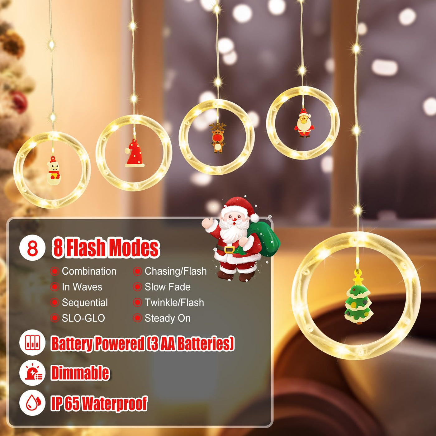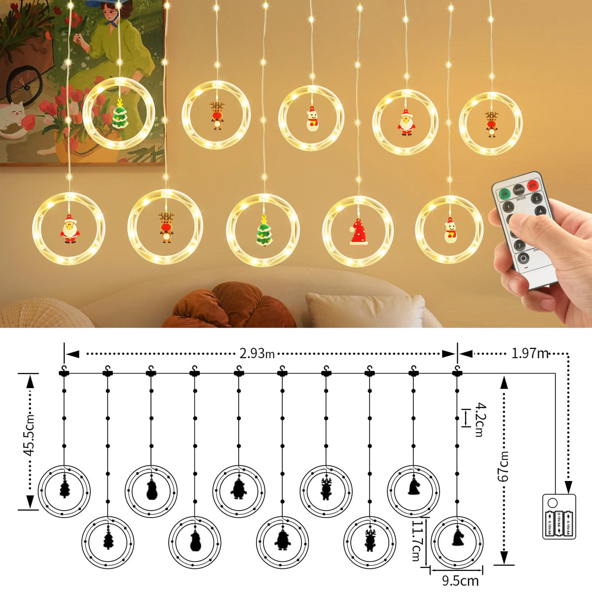 String voltage:4.2-5V Power supply: waterproof battery box, applicable batteries: No. 5 1.5V * 3 Power: total power of about 3W, a single lamp bead 0.06W, the number of lamp beads: 120 Specifications: Expanded size: 490cm * 60cm, single wishing ring diameter 10cm Total length 16FT 5M switch to the first light is 1.94m Doll accessories:10pcs Remote control:1pc