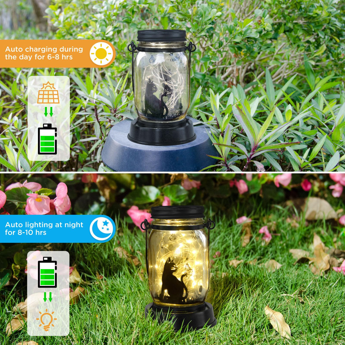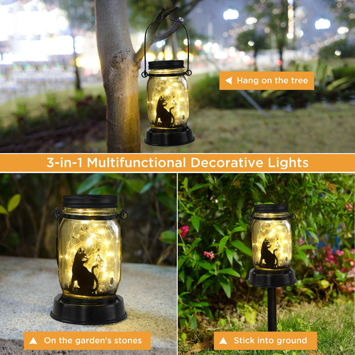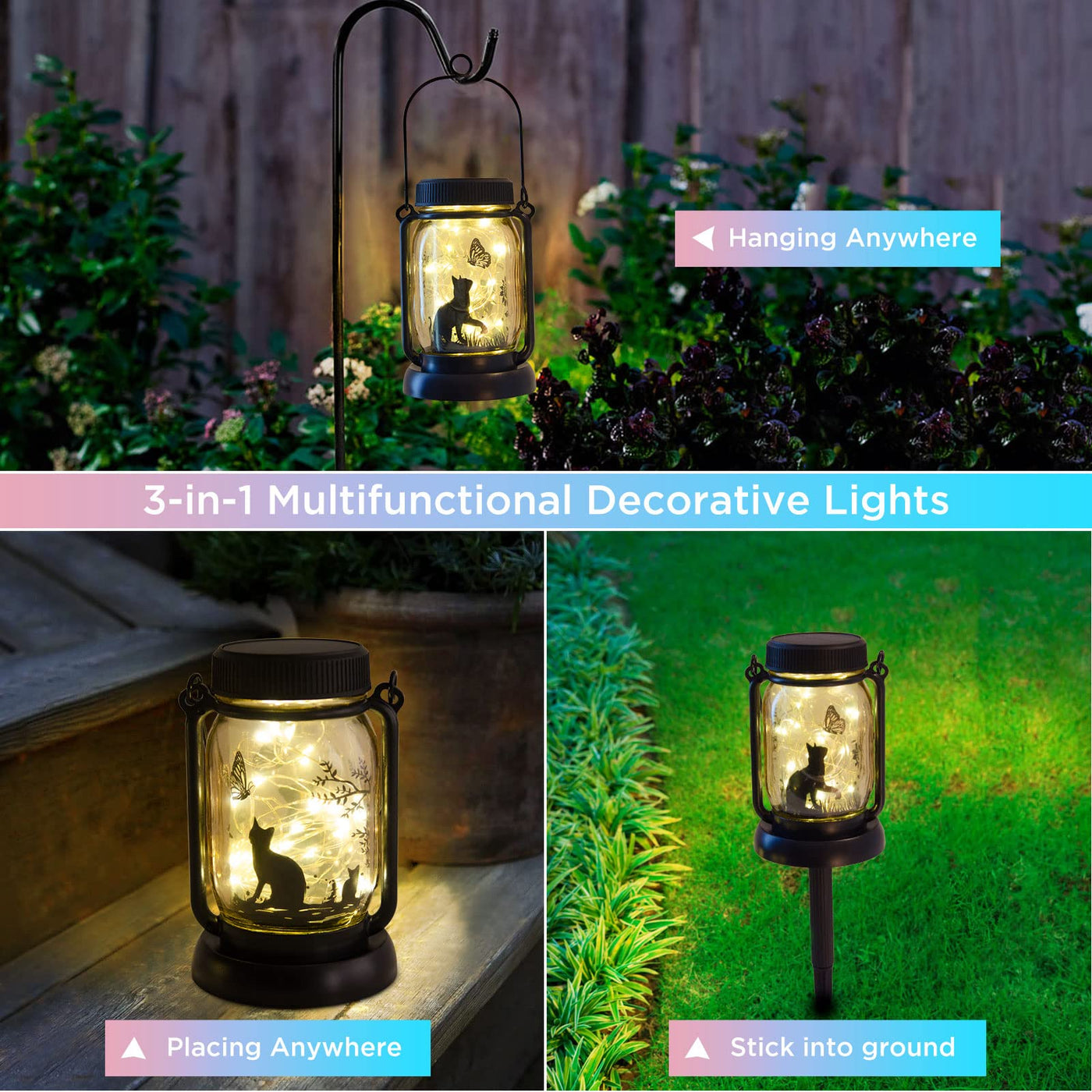 Christmas Garden Decor Cat Lover Gifts Cat Solar Lights, Christmas Gift for Mother/Grandma/Women,Cat Garden Gift, Yard Cat Gift, Lantern Decor, Patio Outdoor Waterproof Cat Solar Lanterns, Gifts for Cat Lovers