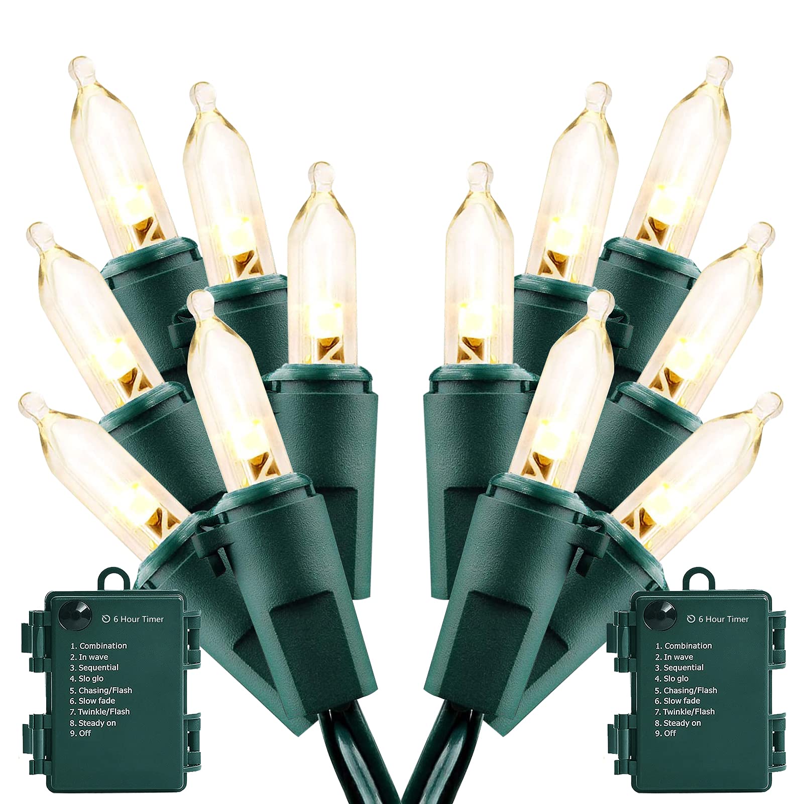 Christmas Lights - Battery Operated String Lights 50 Led String Lights Mini Lights With Auto-Timer And 8 Lighting Modes For Christmas Wreath Party Wedding Garden Home Decoration, Warm White, 2 Pack
