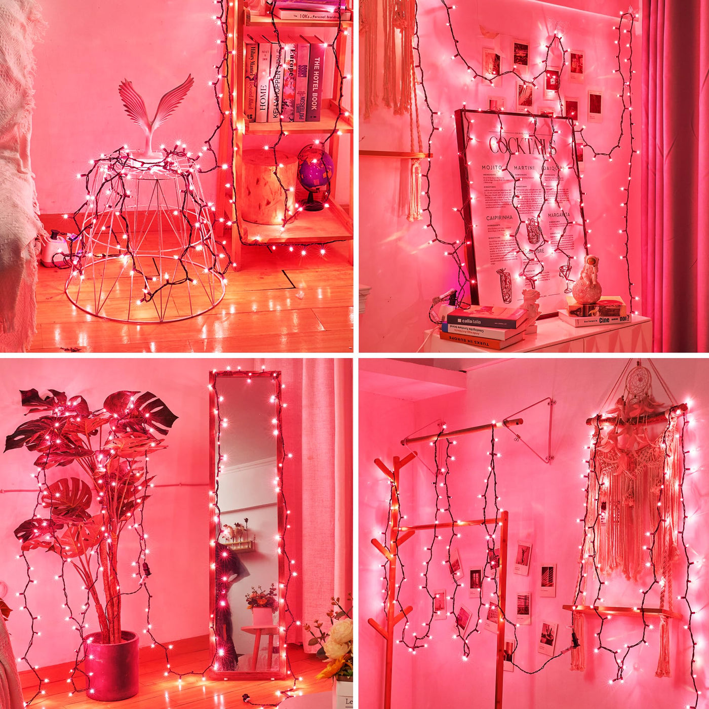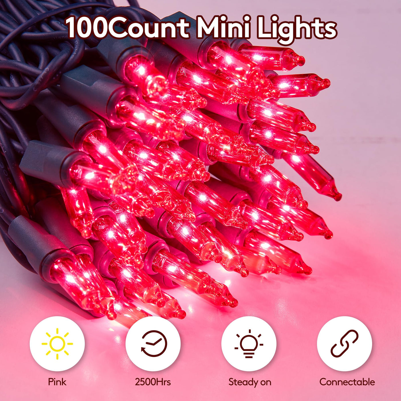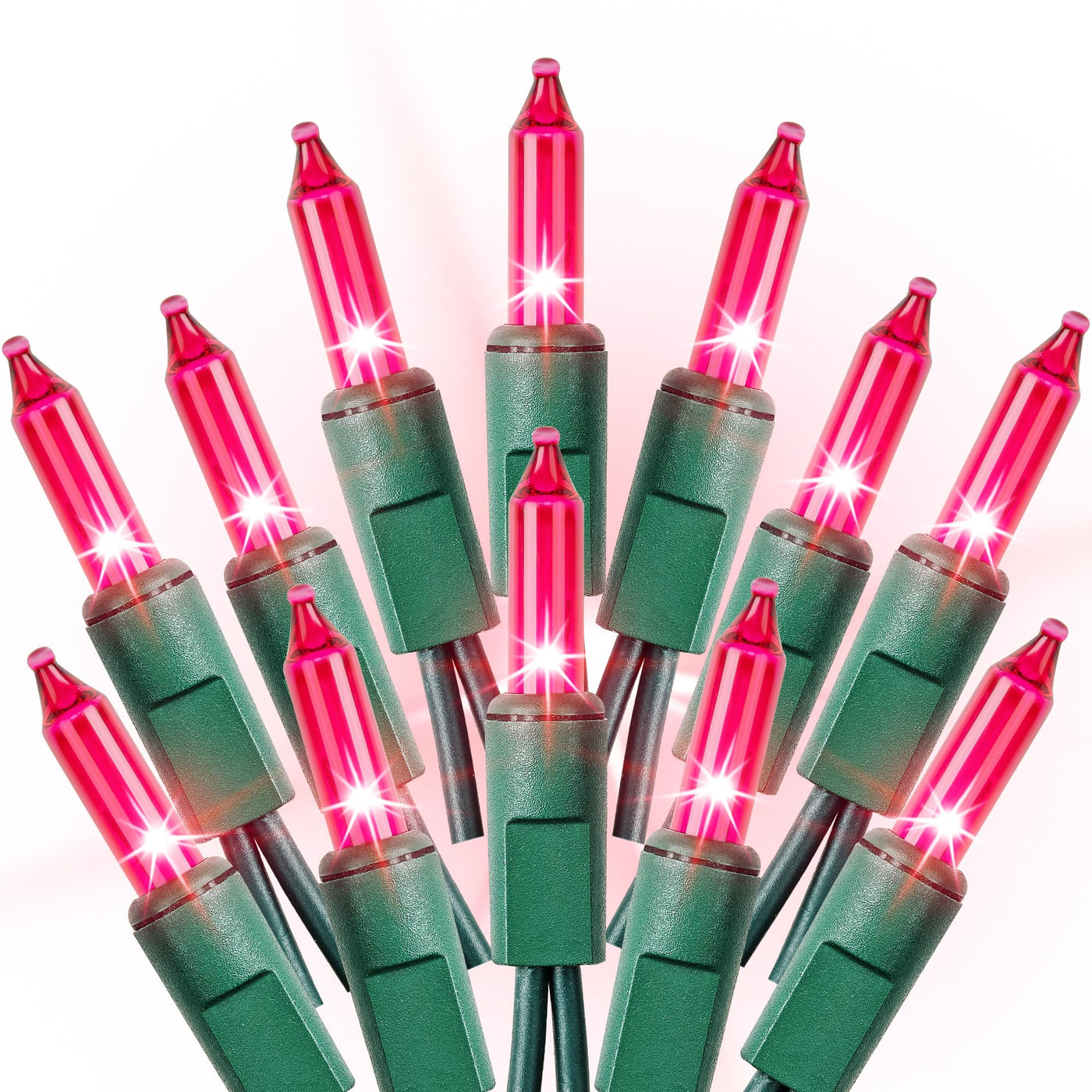 Christmas Lights Indoor Outdoor 100 Count Incandescent Lights Ul Certified Connectable Christmas Tree Lights With Green Wires For Xmas, Wedding, Holiday, Party, Home, Valentines Day Decoration(Pink)