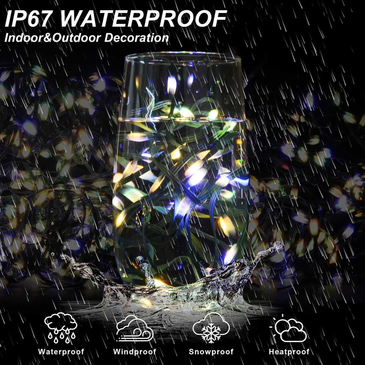 Q: Can these lights be used outdoors in all weather conditions?A: Yes, the Christmas Lights Outdoor are waterproof with an IP67 rating, which means they can withstand rain and moisture, making them suitable for outdoor use in various weather conditions.