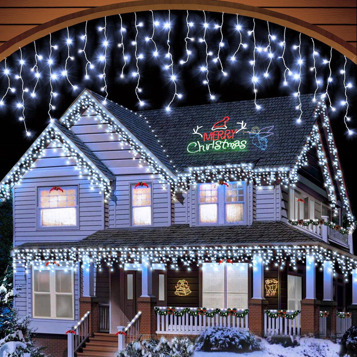 Q: Are the icicle lights waterproof for outdoor use?A: Yes, these icicle lights are IP44 waterproof, making them suitable for outdoor use even in heavy rain and snow. However, please ensure that the plug is kept dry and not exposed to the elements.