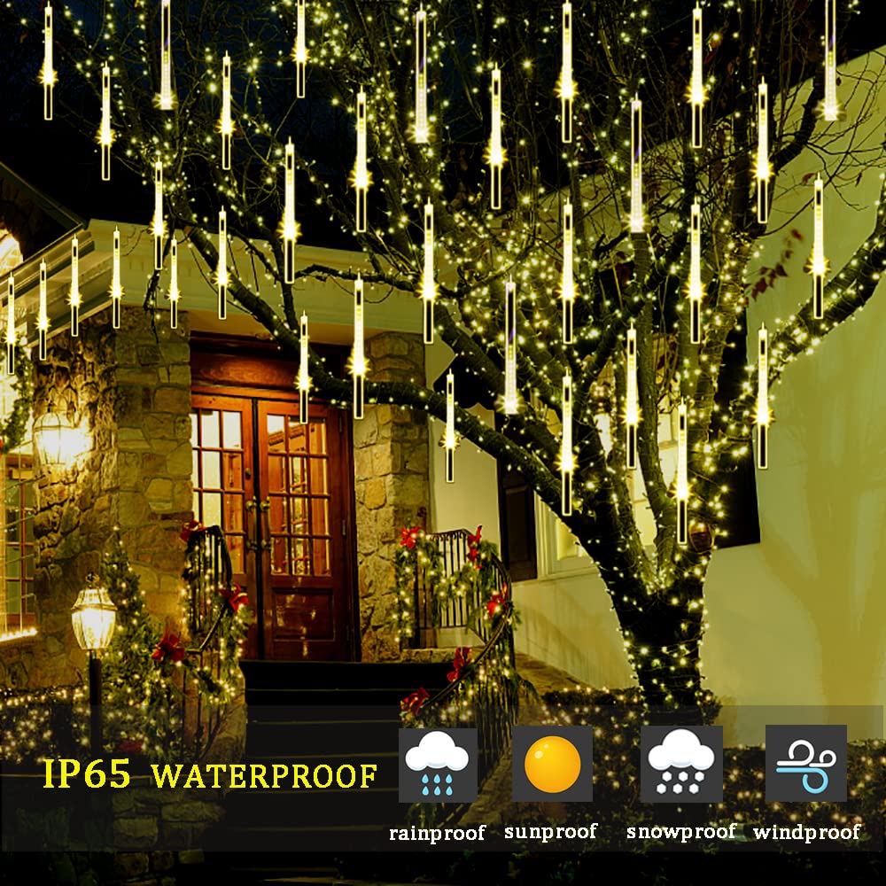 Christmas Lights Outdoor, Meteor Shower Lights Falling Star Lights 16 Inch 8 Tubes 256 Led Icicle Snow Falling Lights Raindrop L