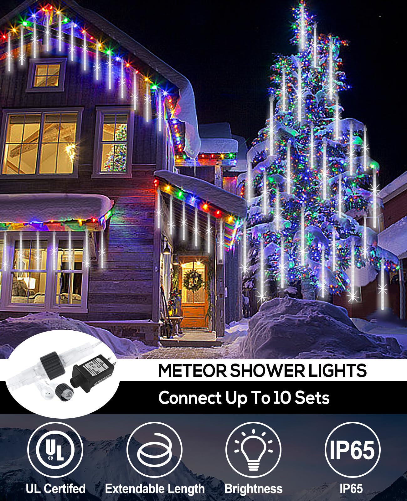 Christmas Lights Outdoor Ul Certified Meteor Shower Light 12 Inch 10 Tubes Led Falling Rain Drop Lights Icicle Snow Cascading Xm