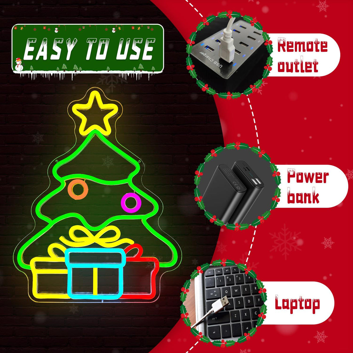 Christmas Neon Sign Christmas Tree Neon Sign Gift Box Christmas Neon Light Neon Christmas Decorations Dimmable Christmas Led Neo