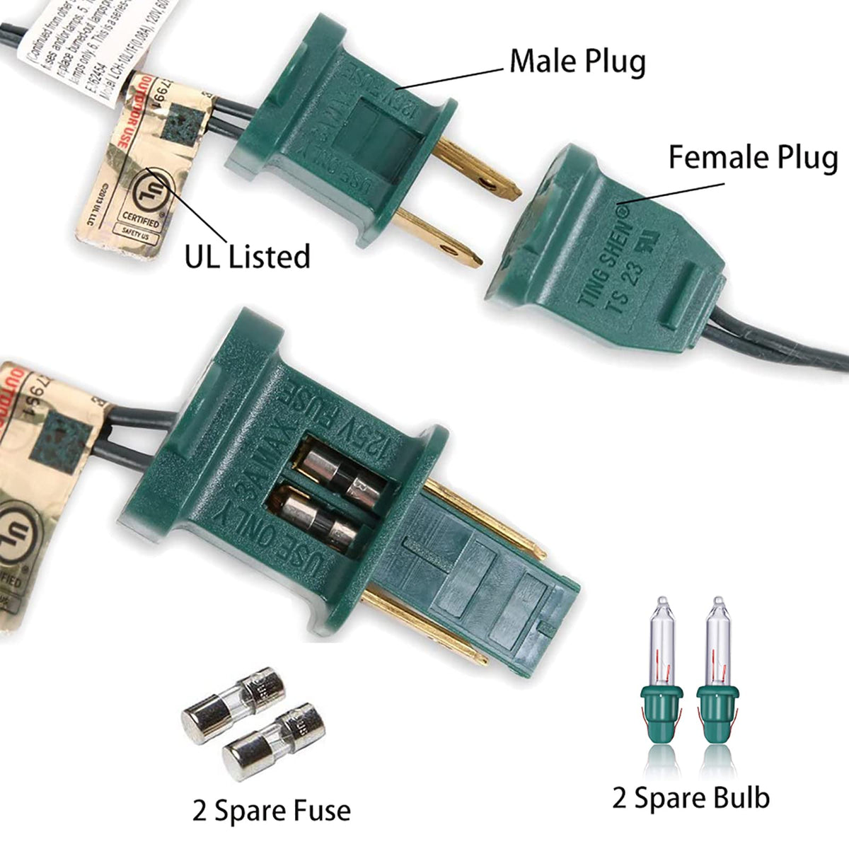 Q: How many light bulbs are included with the string lights?A: The string lights come with 10 mini incandescent light bulbs, along with 4 spare bulbs, providing you with extra bulbs in case of any replacements needed.