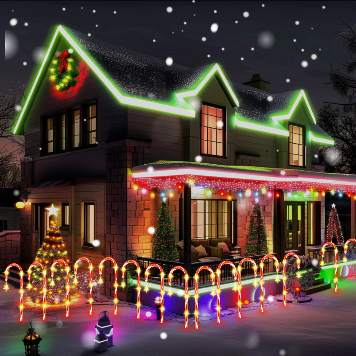 Size &Package: The set includes 24 x candy canes light(12pcs x 2 set), 1xsolar panel, 1x ground stake.Our Christmas candy cane lights are ensuring that outdoor pathway lights can withstand any weather, such as rain and snow.